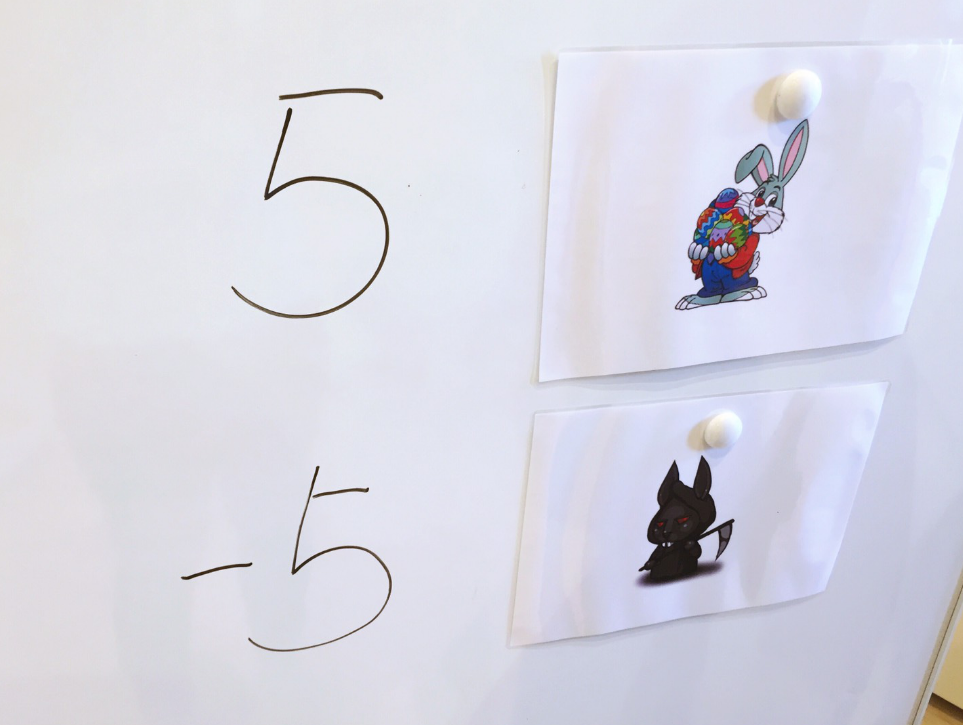 先生:”Very good. It’s a pink rabbit.”(良く出来ました。それはピンクのうさぎです)