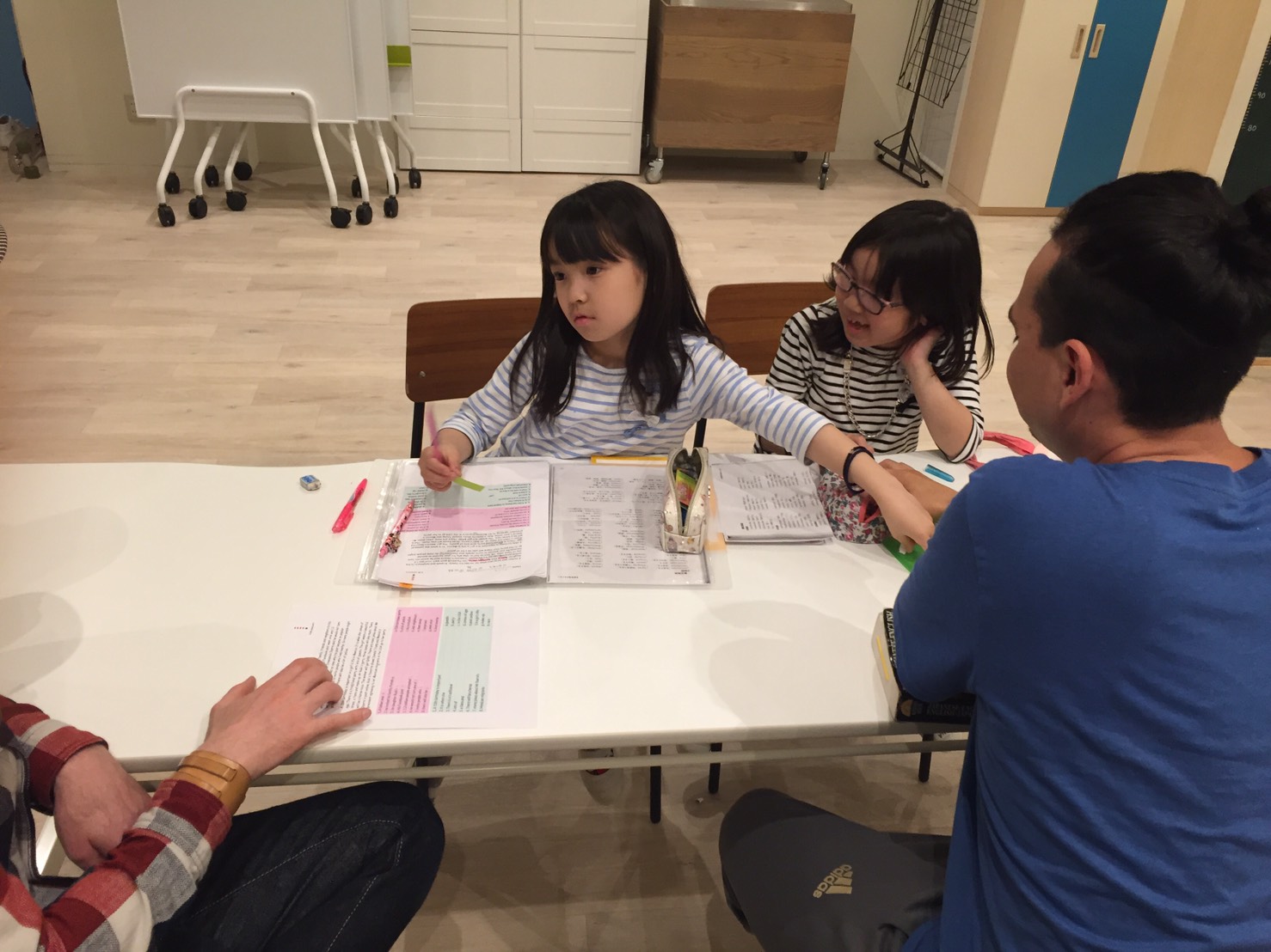 ”When you come to school, you say hello to the teachers.”(スクールに来たら、みんな先生達にハローって言いに来てくれるよね)