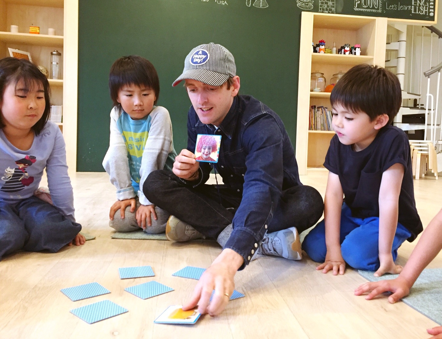 登校してから、まずは宿題がなかったり終わった生徒さんは、先生と英語のカードゲームをやりながら、単語や発音の練習です。