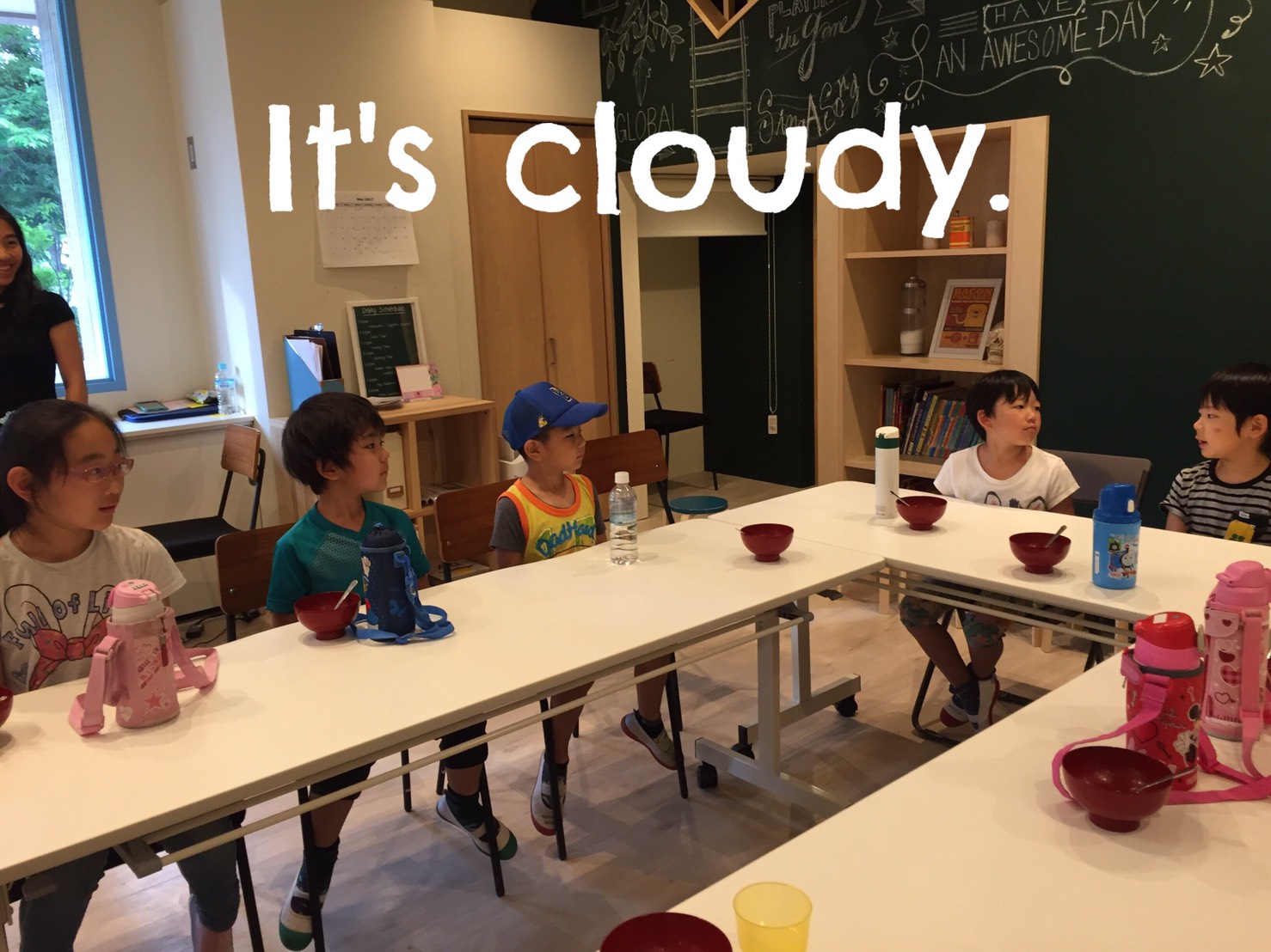 “It’s cloudy. How’s the weather?”(曇りです。どんな天気?)