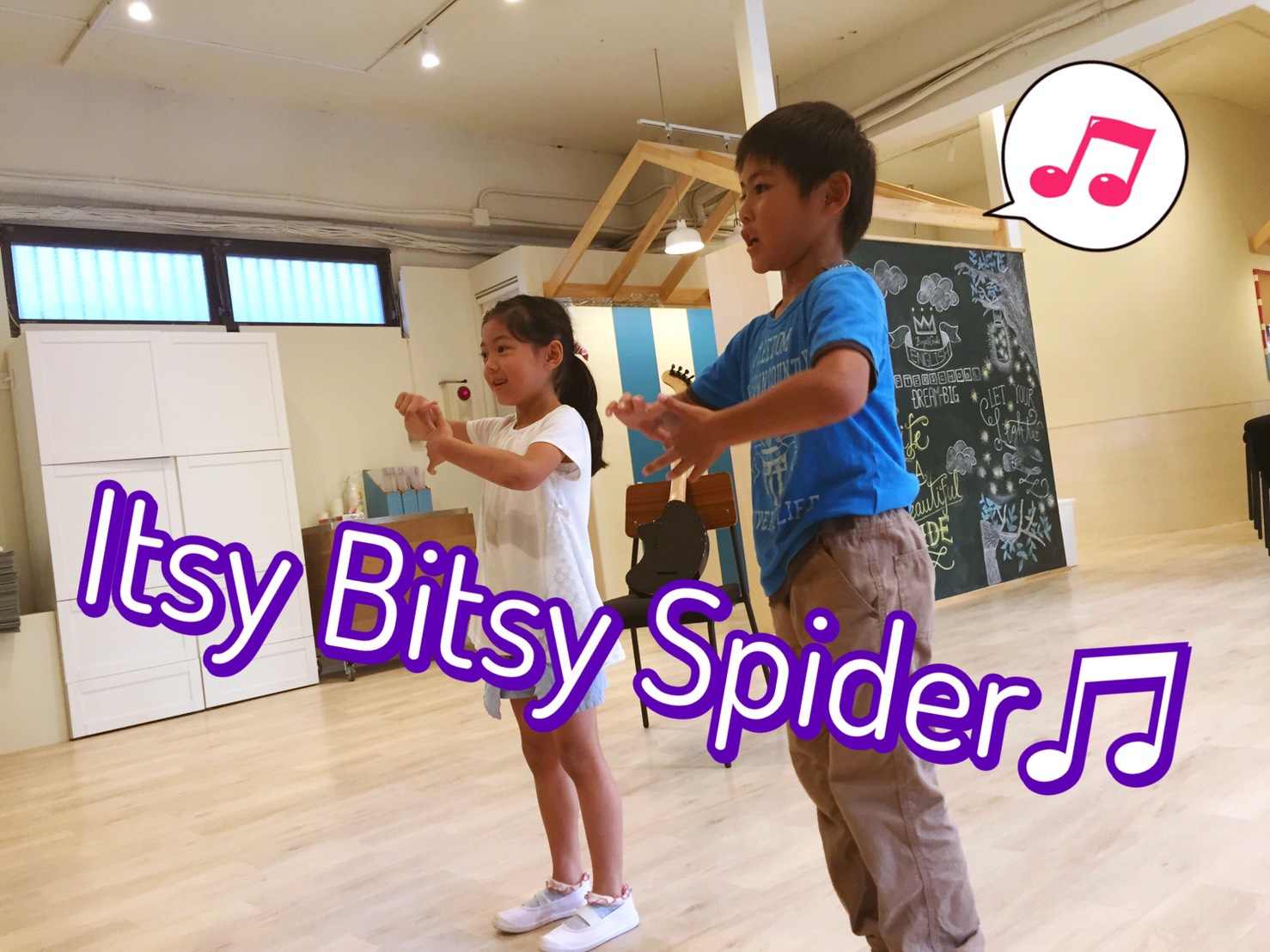 (静かな湖畔の森のかげから。。。のメロディです)“the itsy bitsy spider”( ちっちゃなクモが)