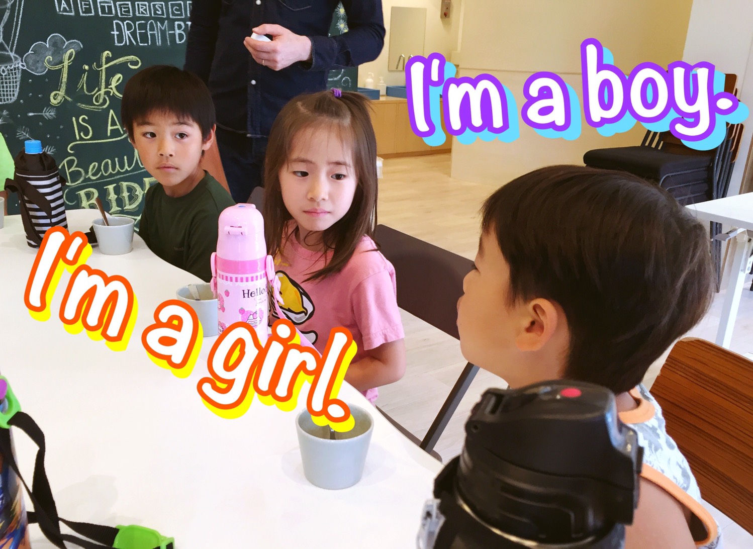 “I am a girl, you are a boy.”(私は女の子です。あなたは男の子です)