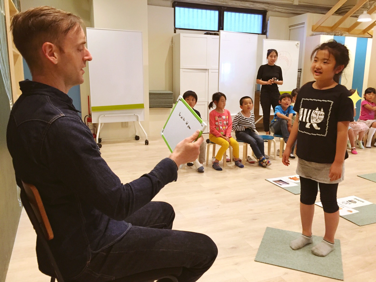 正解は先生が持っているホワイトボードに書かれたセンテンス。