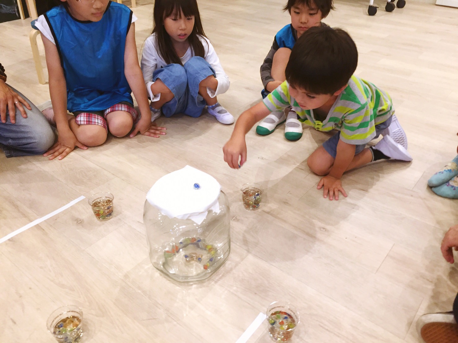 ドキドキマーベルボール!!濡れたビー玉をティッシュの上に載せていき、落ちてしまったら負け!