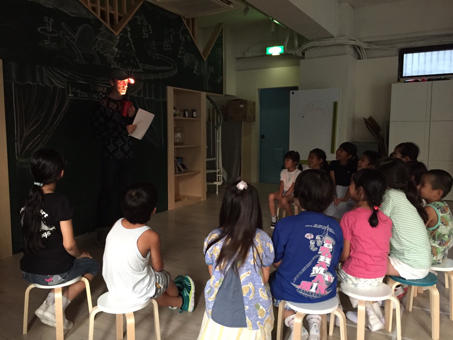 その後は、外遊びとマイク先生の”Home alone”のストーリータイム。みんな本格的な演技に興味深々でしたね。
