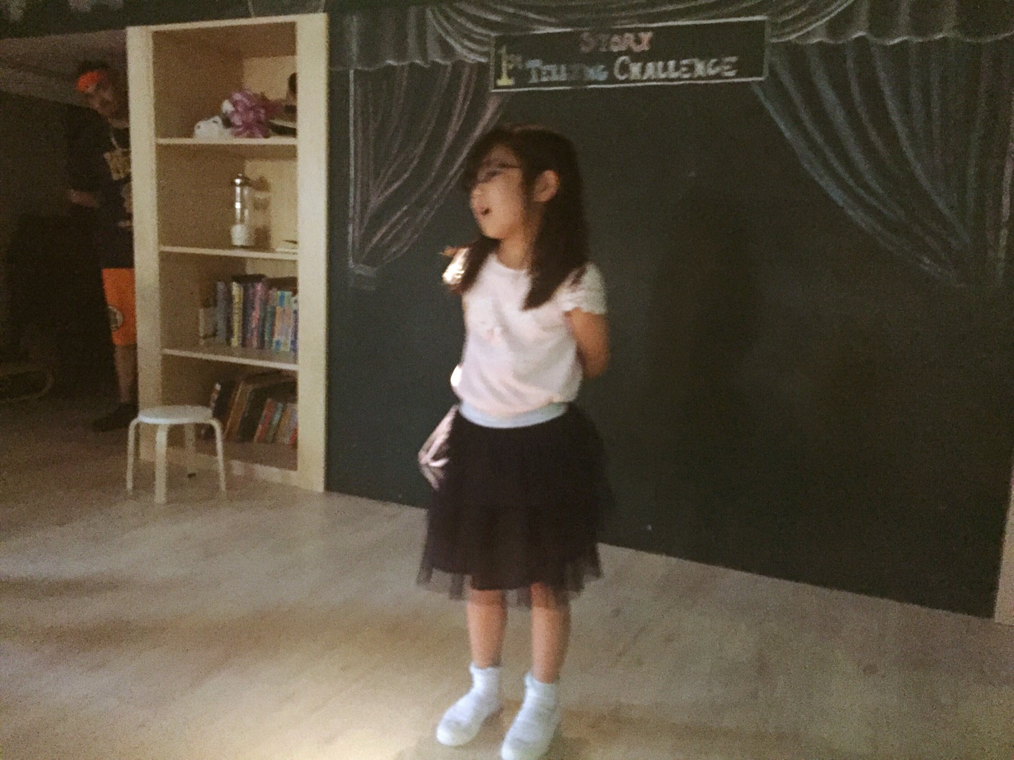 続いては、ドラマタイム!!電気やライトなども調整して、雰囲気づくりもばっちり。一文づつてもかまわないので、できるところまででよいから発表してみてください!