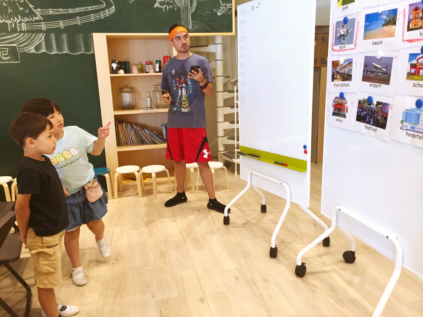 まずはいつものようにスナックタイムの後に、ペアになって「場所」の名詞のチェック。先週から練習しているので、みんなもかなり覚えてきて発音もよくなって来ました。