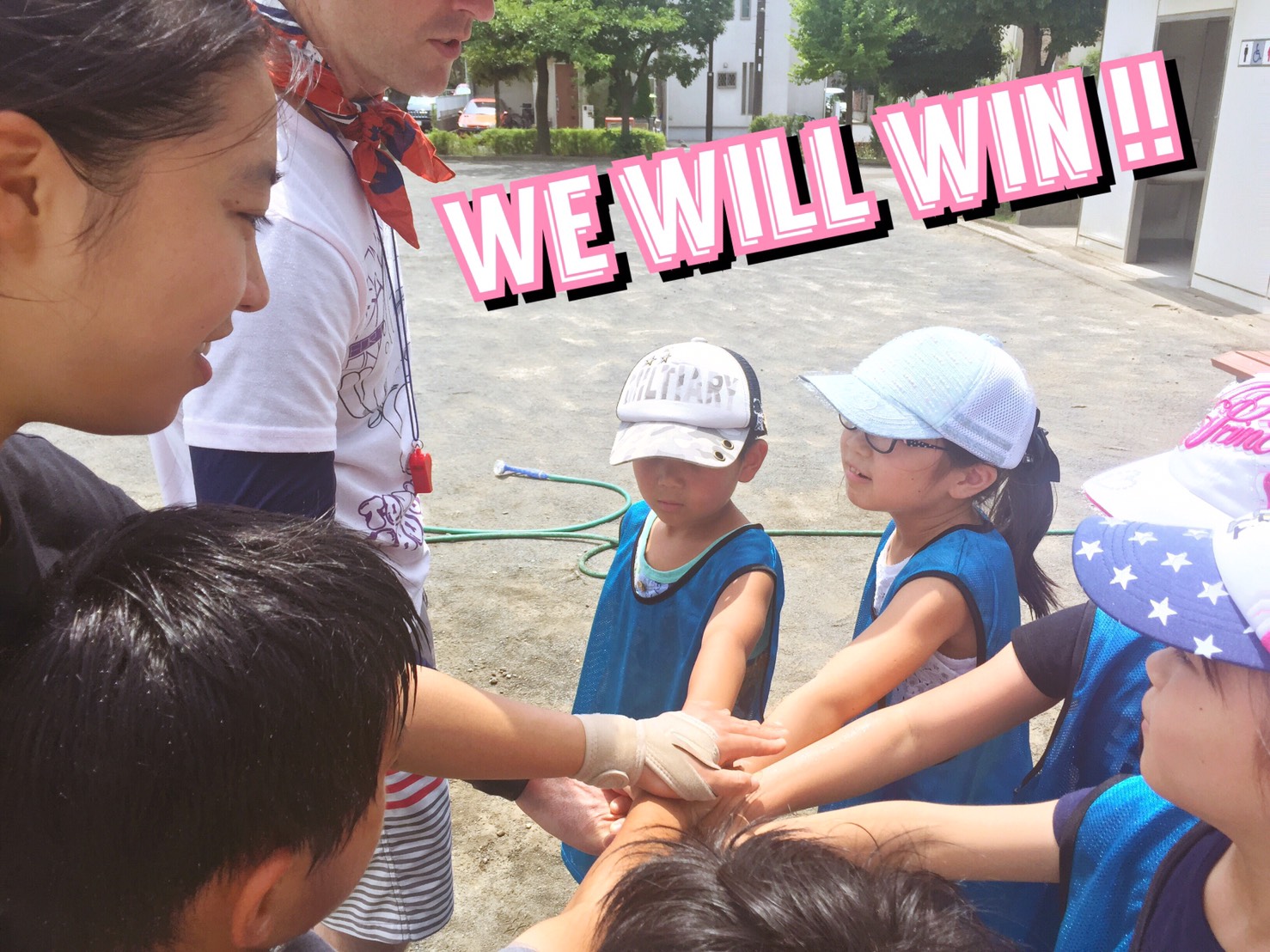 ゲームがはじまるとみんな先生にならって、英語で応援合戦がはじまりました!