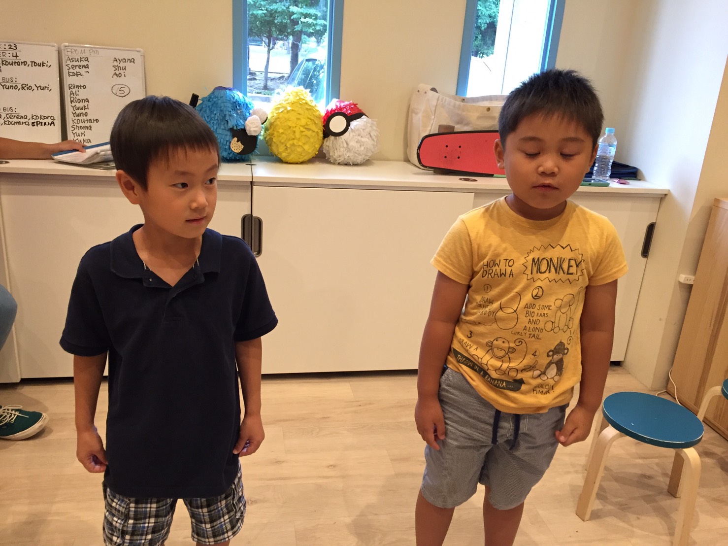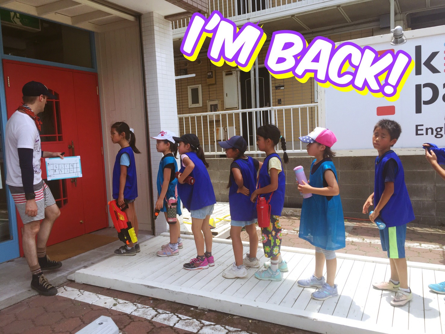 先週末から本格的に始まったサマースクール。今日から参加の生徒さんもたくさんいるのでまずは外出時のルールの確認をしてから。“Don’t speak Japanese.”(日本語は喋らないでね)
