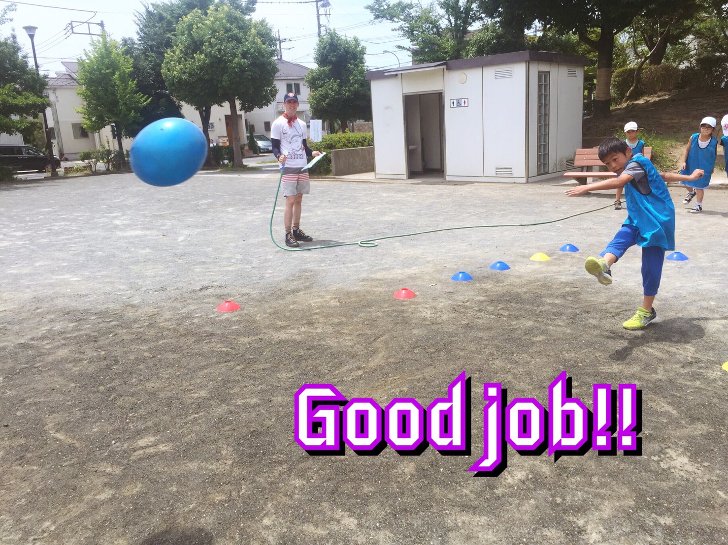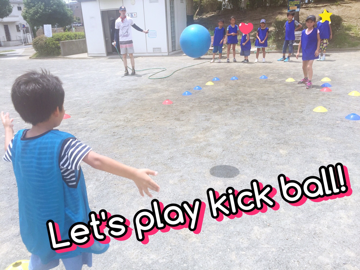 今日の午前イベントは”Sports Day”(スポーツデイ)で”Kickball”(キックボール/キックベース)をやりました。