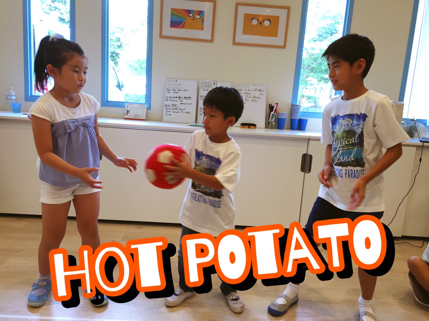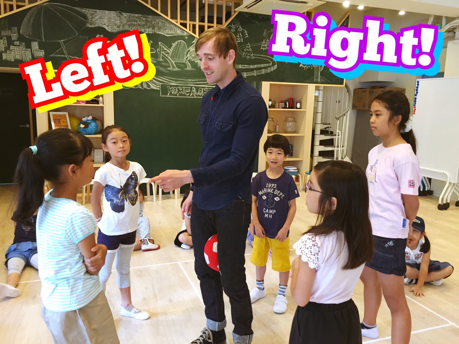 まずは、ボールを使ったゲームで簡単な英語の練習からです。
