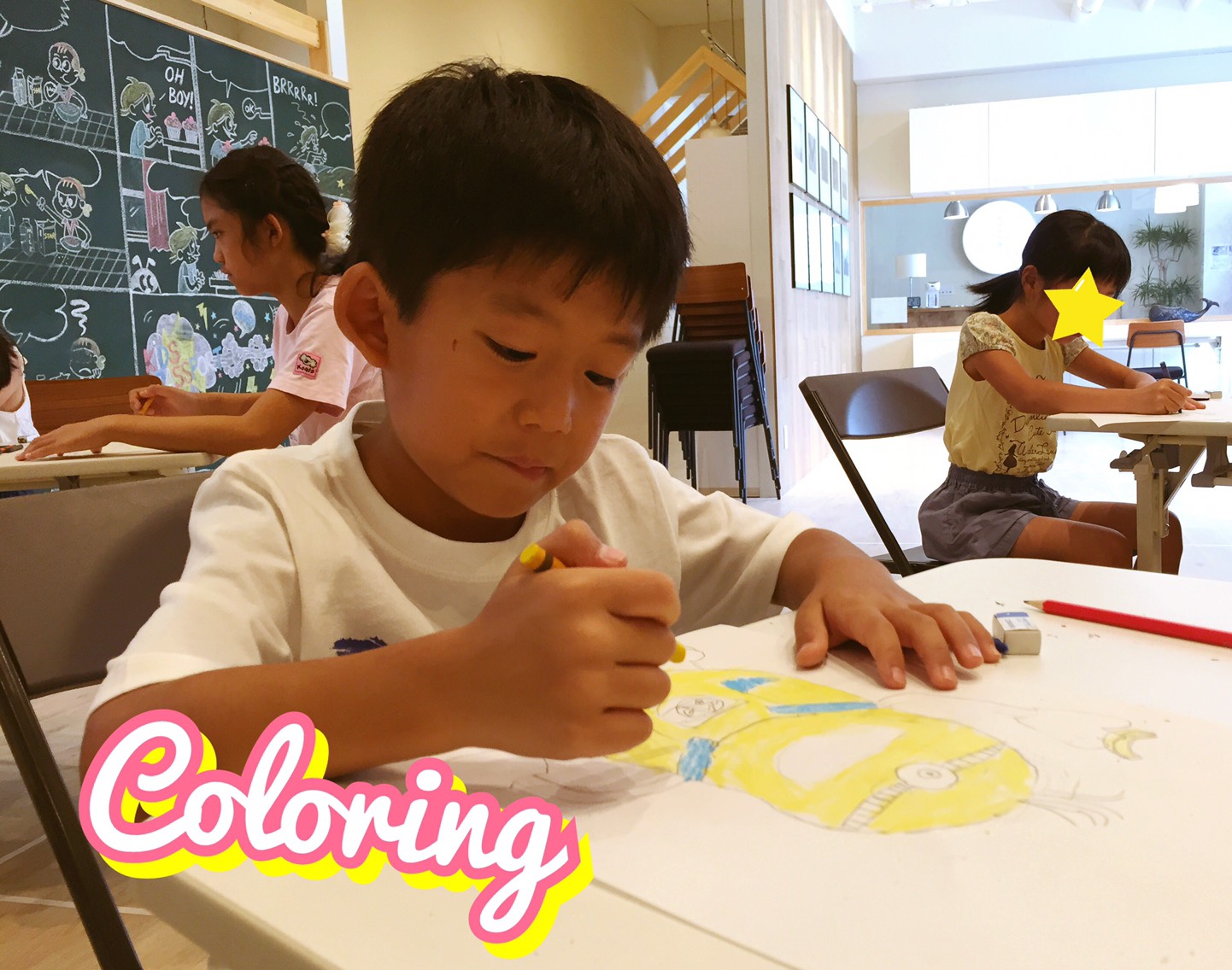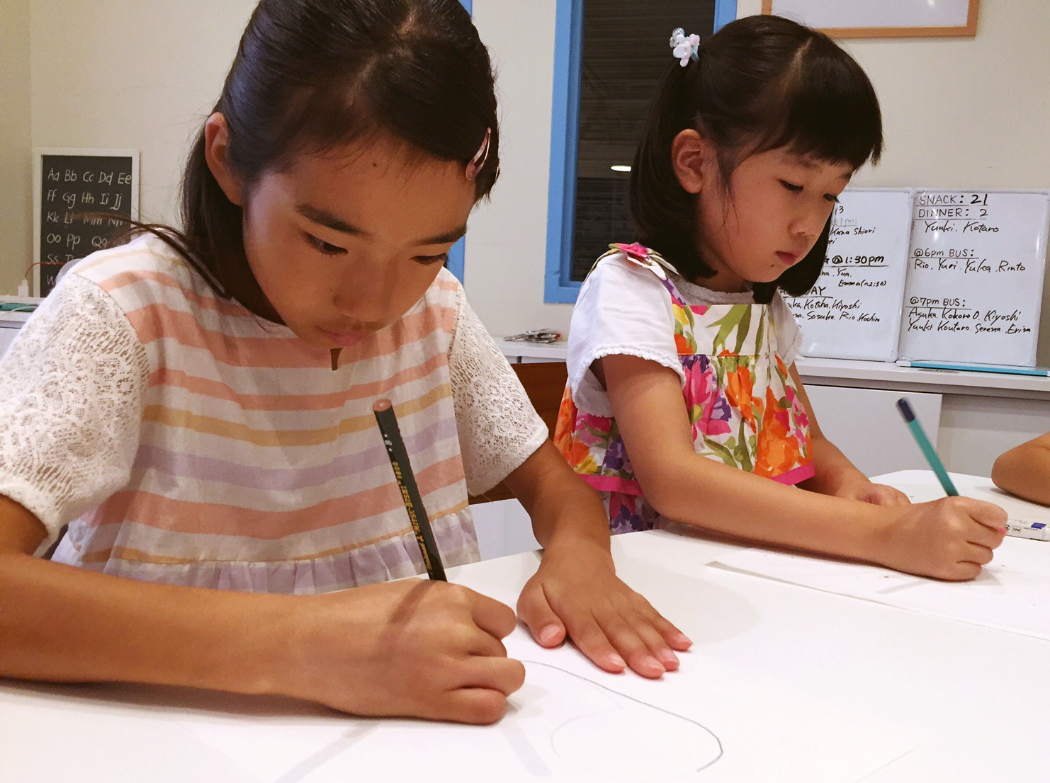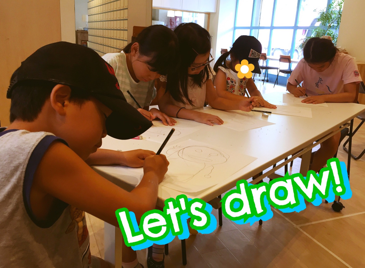 今日は久しぶりのお天気!ですが、今日は室内で絵画教室です。サマースクールも1週間が過ぎ、いよいよ夏本番です。