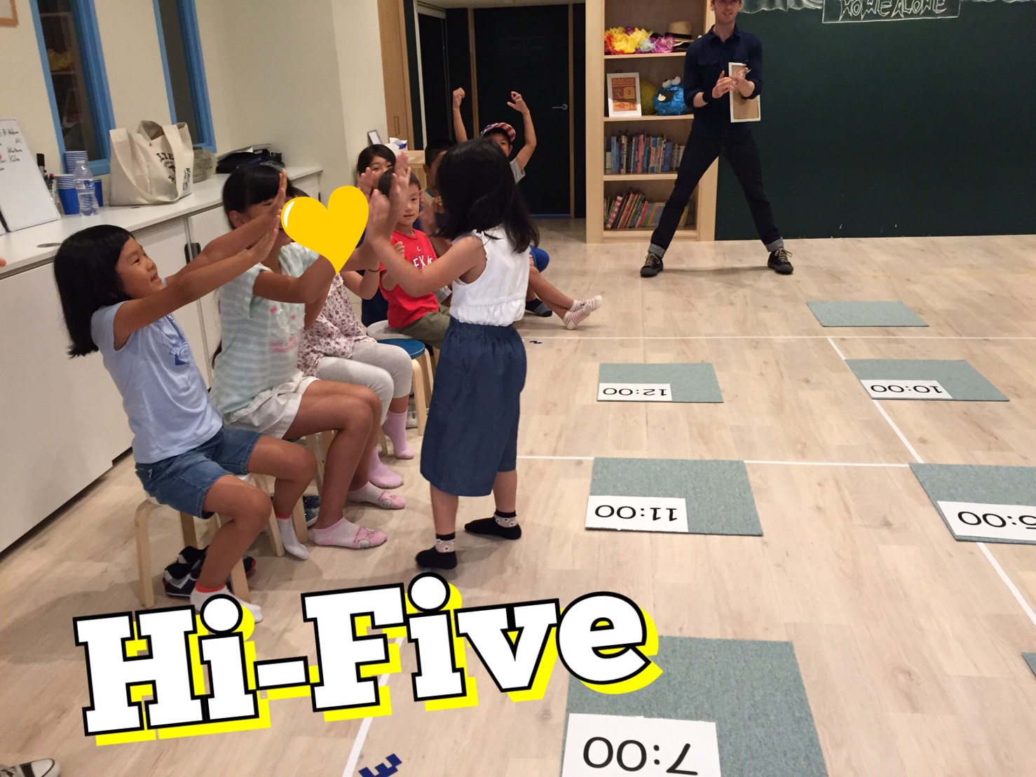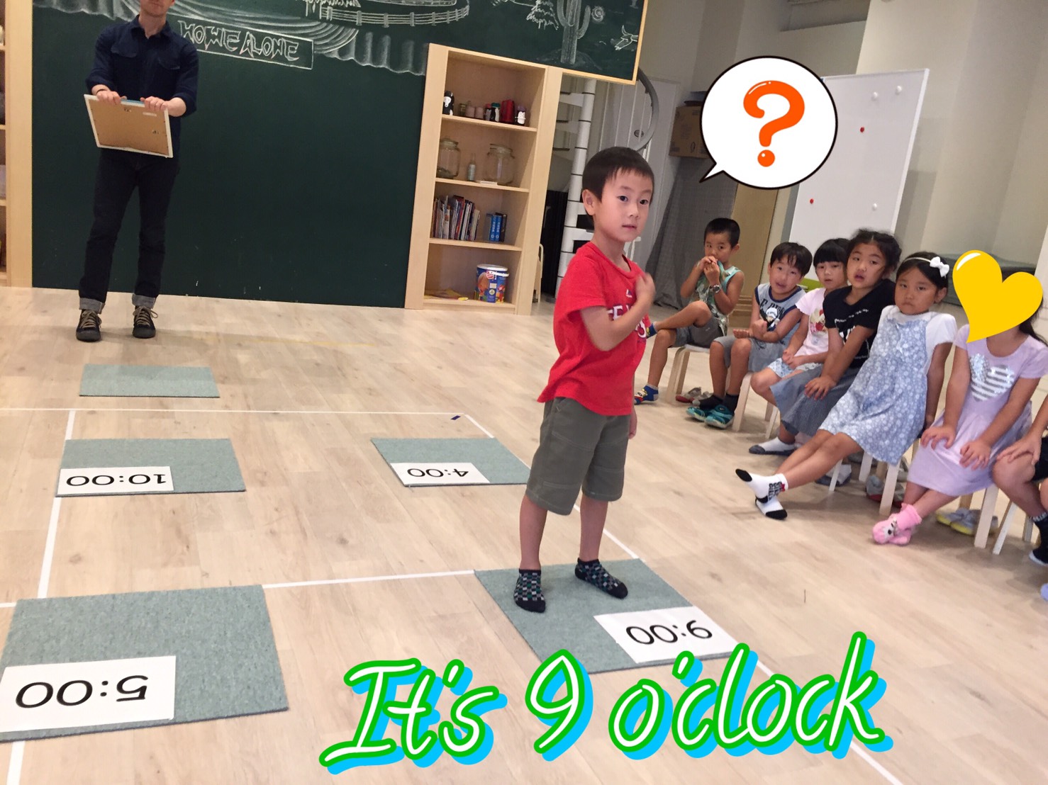 そのあとは、時間・数字を使ったセンテンスゲーム、マイク先生のジェスチャーと言葉を真似をするミミック・マイクをしました。