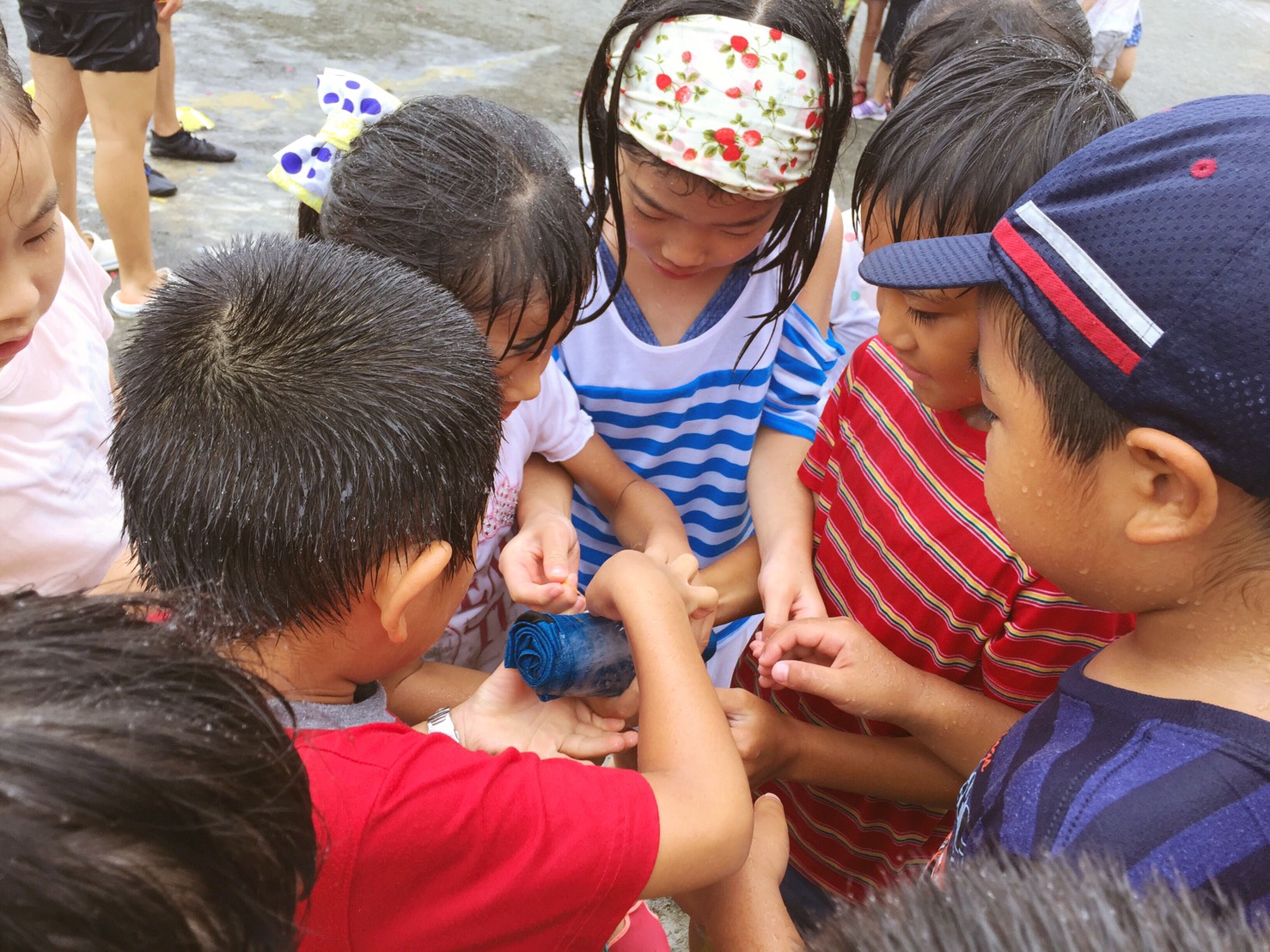 前回同様に、今回も数百個の水ふうせんを送迎バスのドライバーさん達ががんばって作ってくれました!!
