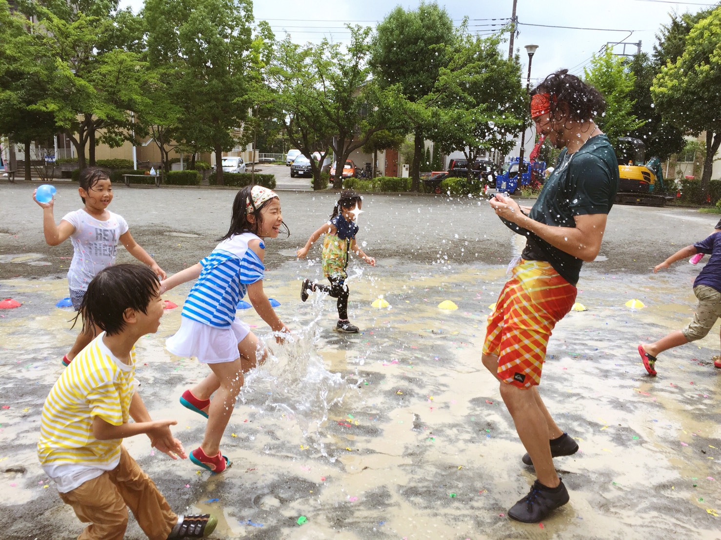 最後は、大量につくってもらった水風船をひたすら当てあうゲーム!!