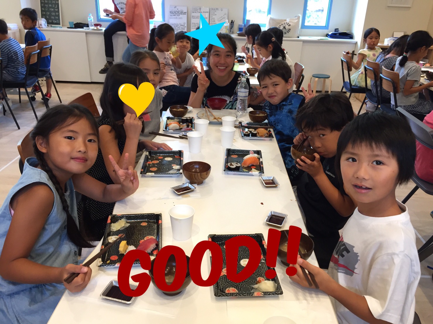 みんなにお寿司が配られたら手を合わせて”Let’s eat!!”(いただきます!!)