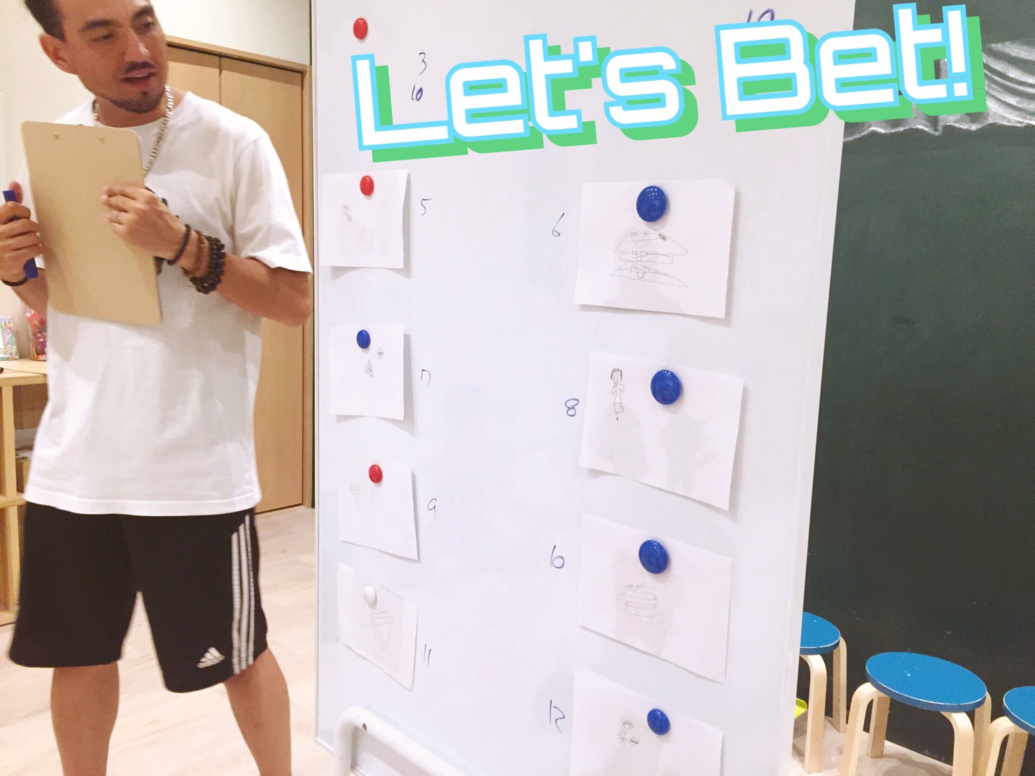 午後は、ミミック・マイクや運動、そしてオークション!?が行われました。自分で書いた絵を渡されるコインで買い上げる!というものです。