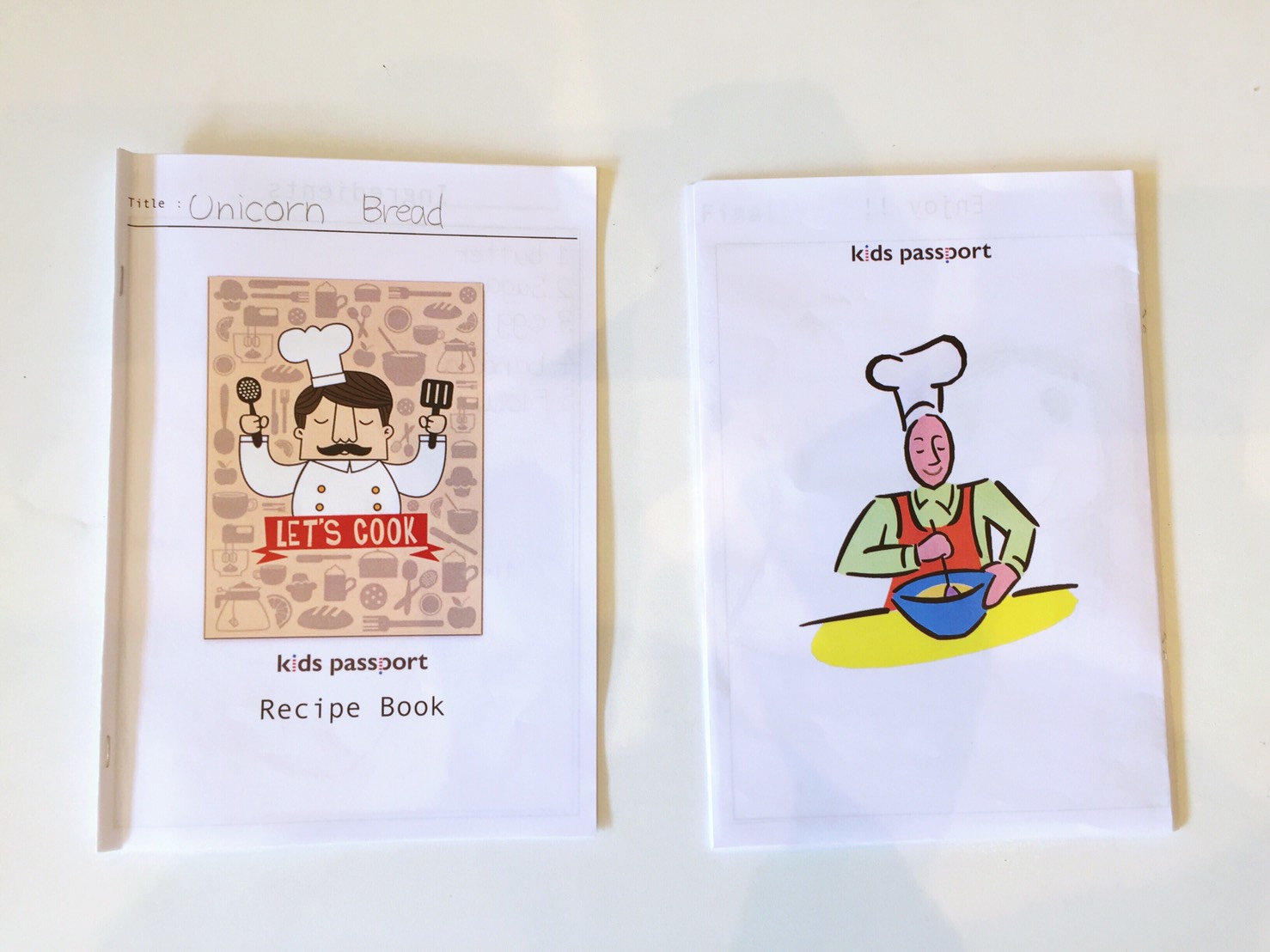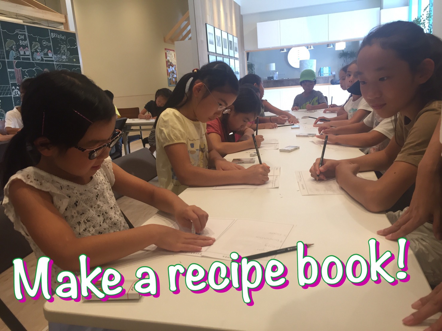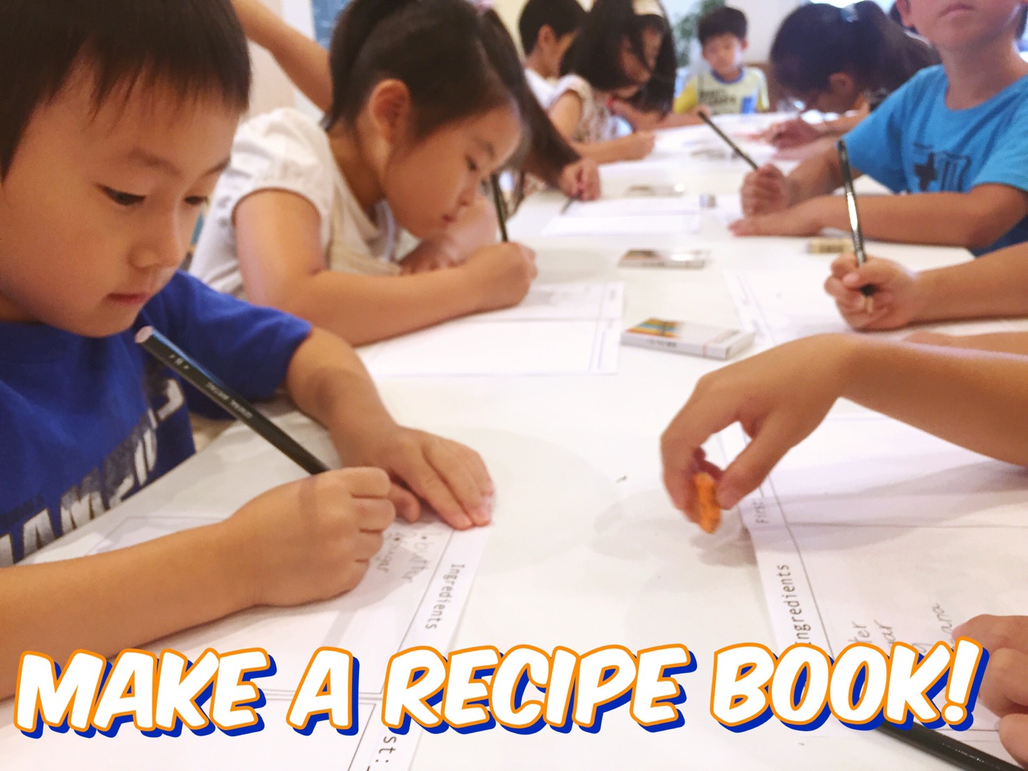 まずは生徒さん達に、今日作るもののレシピ本が手渡されました。中身はもちろん白紙。途中で時間をつくるので、自分で絵や英文を書いて、自分自身でレシピ本を完成させます。