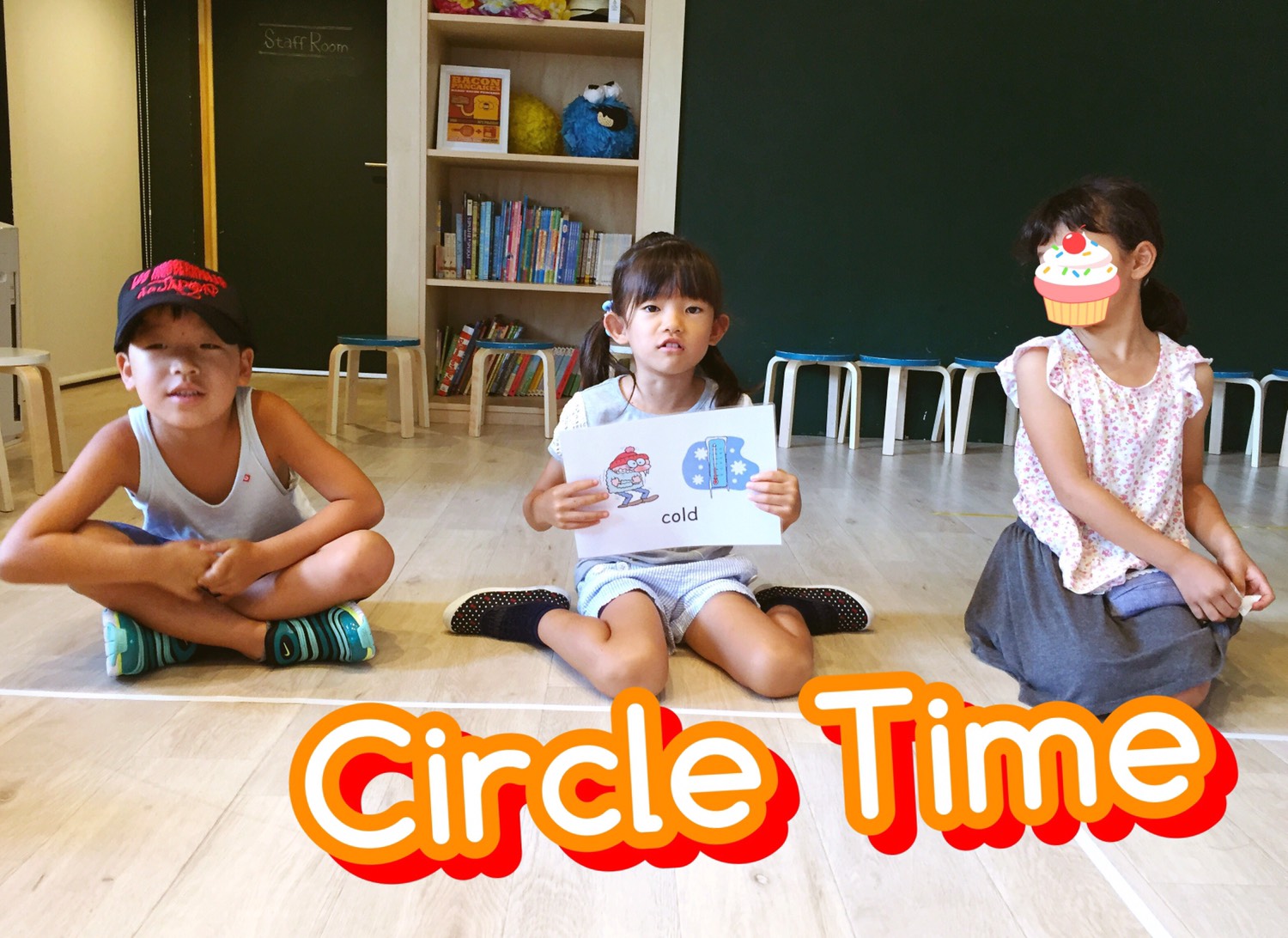 最後はサークル・タイム。単語をつかった自由にセンテンスを作文して発表です!