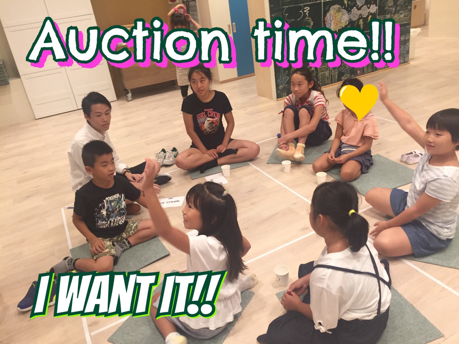 午後も盛りだくさんでした!ヨガに始まり、ミミックマイク、外は雨だったので、部屋の中で”スモア”(マシュマロを焼いたもの)、オークションをやりました。