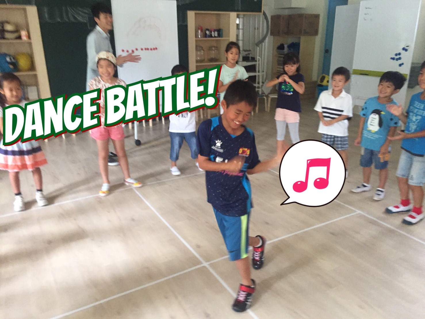 まずはダンスやゲームをやって準備体操です。