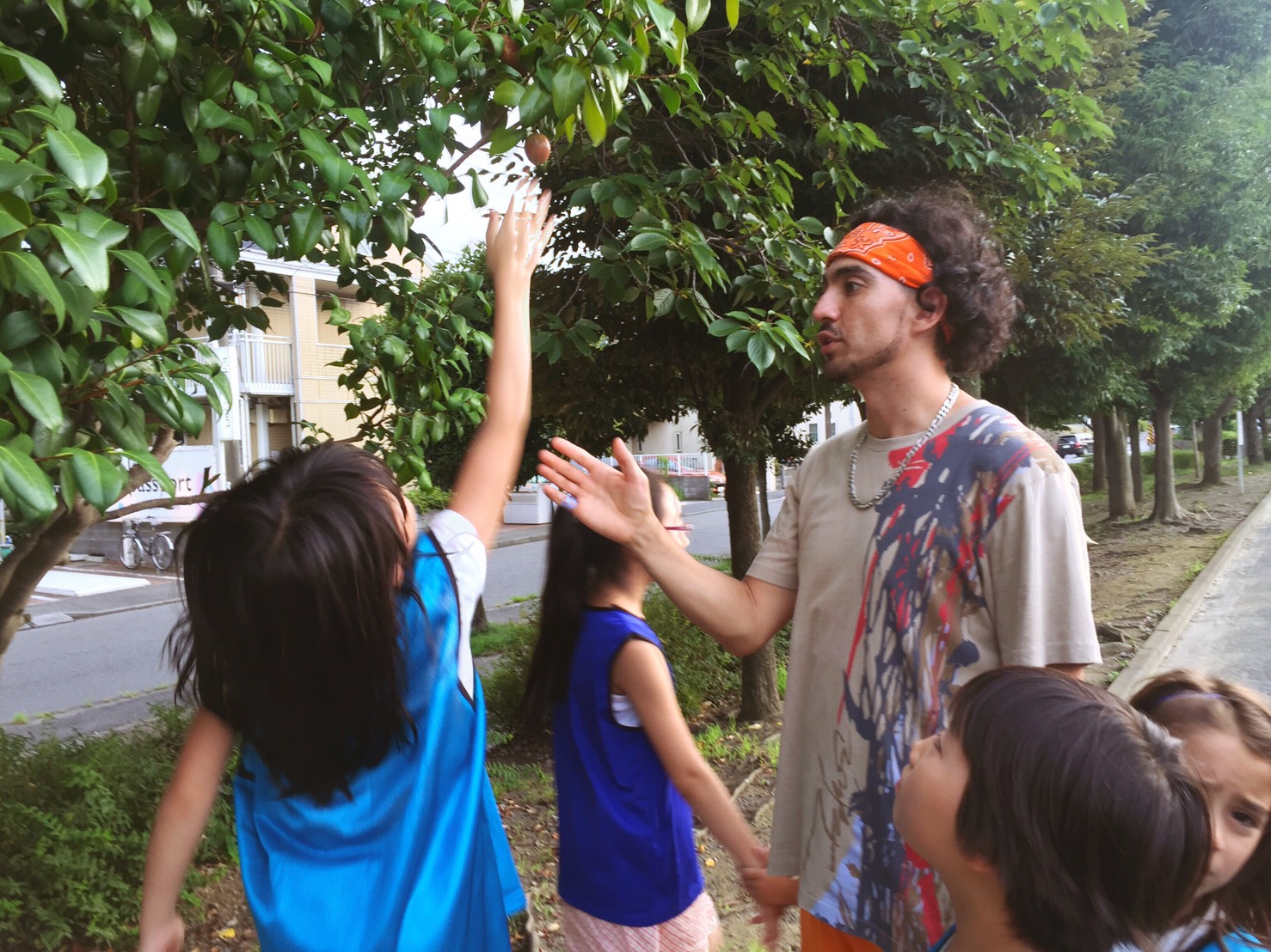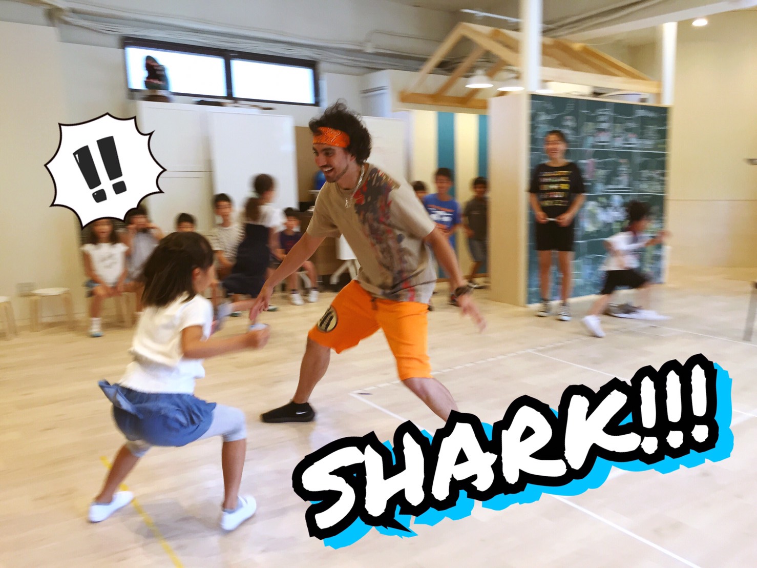 まずはいつものように、準備運動です。パイレーツゲームで英語の指令を聞いて、運動しながらお腹をすかせましょう!