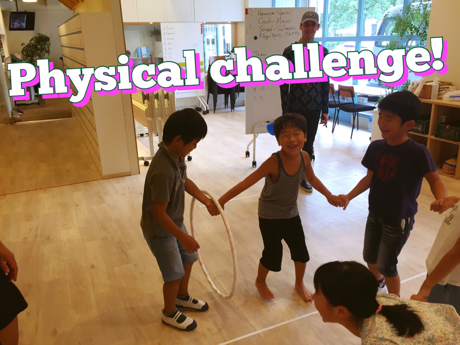 午後は食べた分を運動しよう!ということでフィジカルチャレンジからはじまりました。