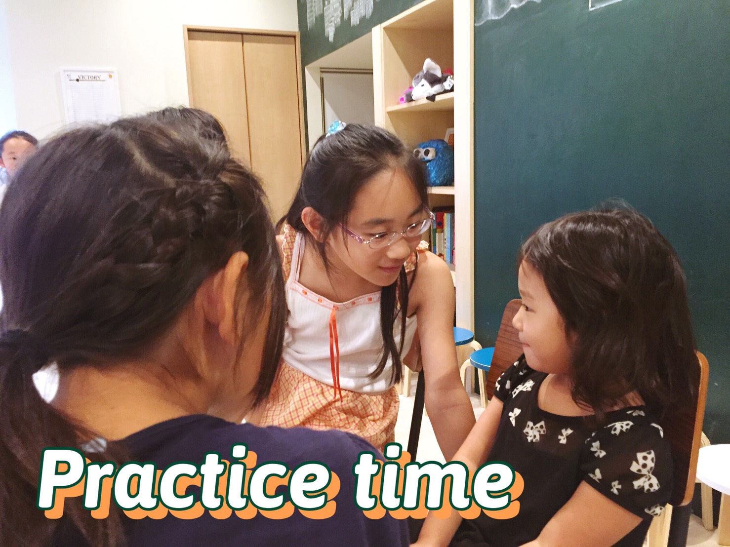 スナックタイムは隣どうしで質問/答えの受け答えの練習!!みんな上手に、声を大きく自信を持って、ナチュラルスピードでできるように挑戦していました。