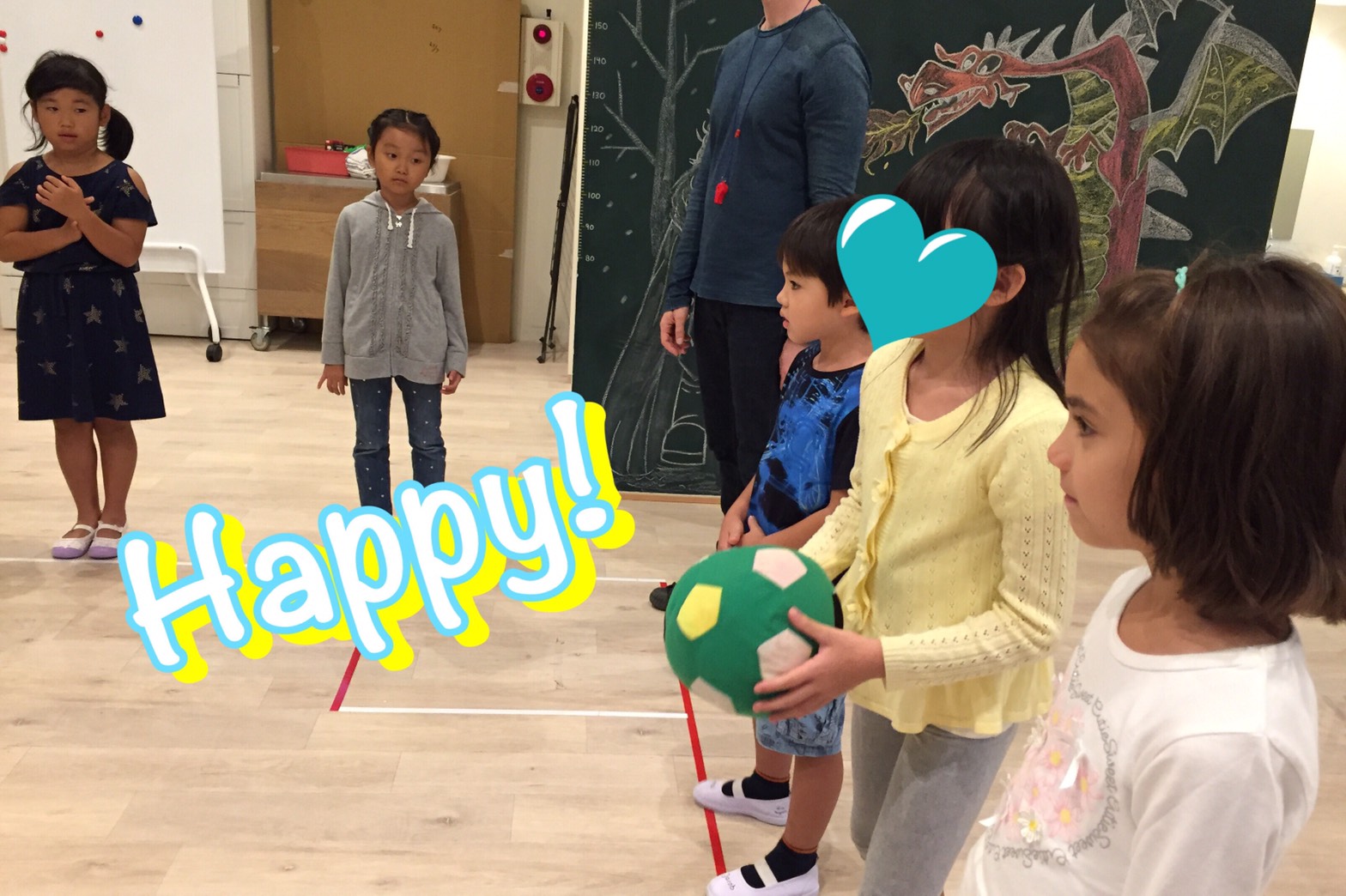 まずはボールを回しながら単語の練習。大きな声で、はっきりと、発音もチェックされるよ!