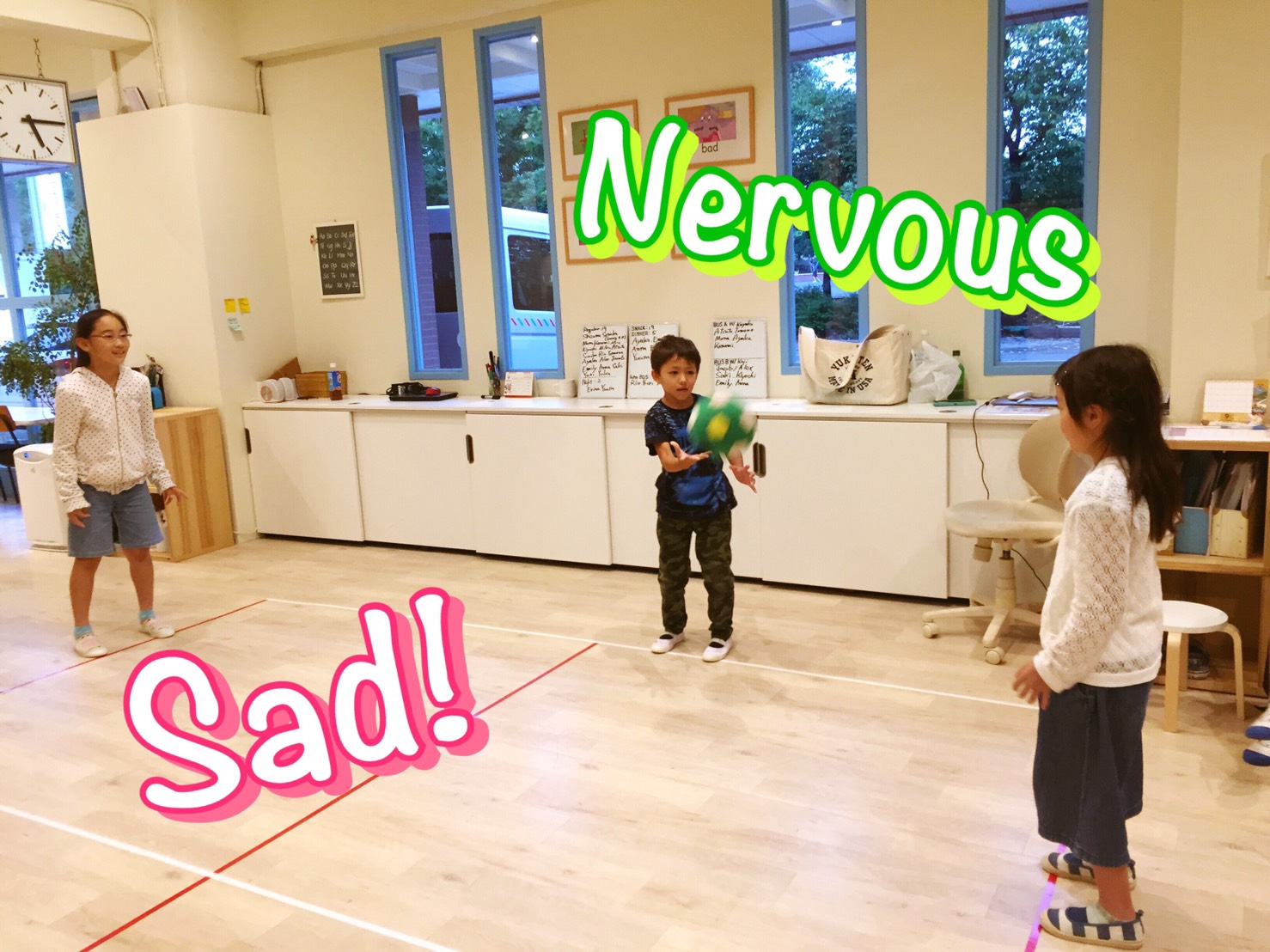 今週からはじまっている重点ワードを使ったセンテンス表現の練習。日常でもよく使う単語、センテンス表現をいろいろなシチュエーションやゲームで使って身につけていきましょう。 “Nervous”(緊張する)