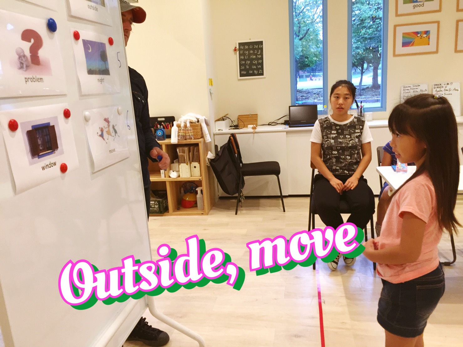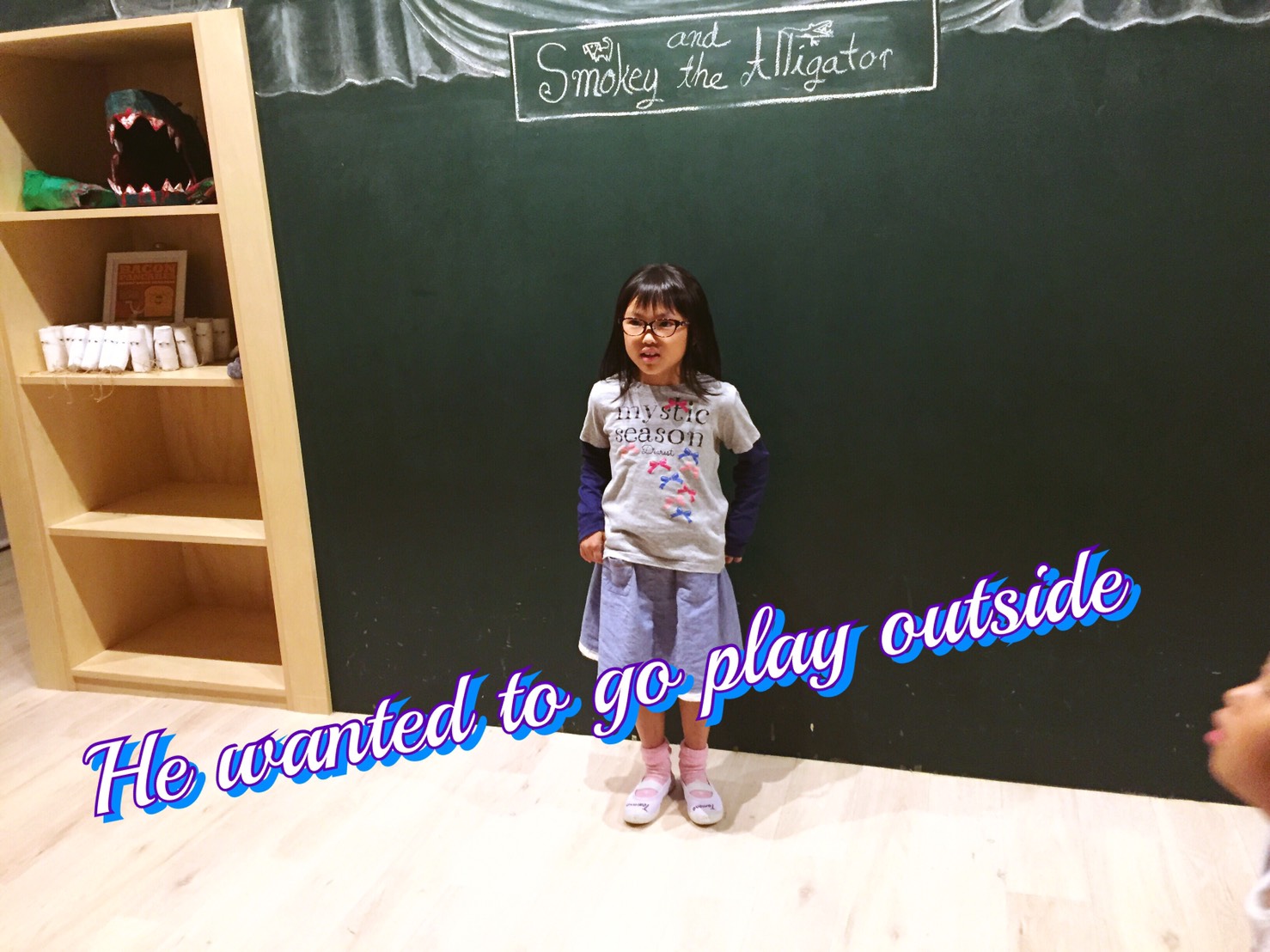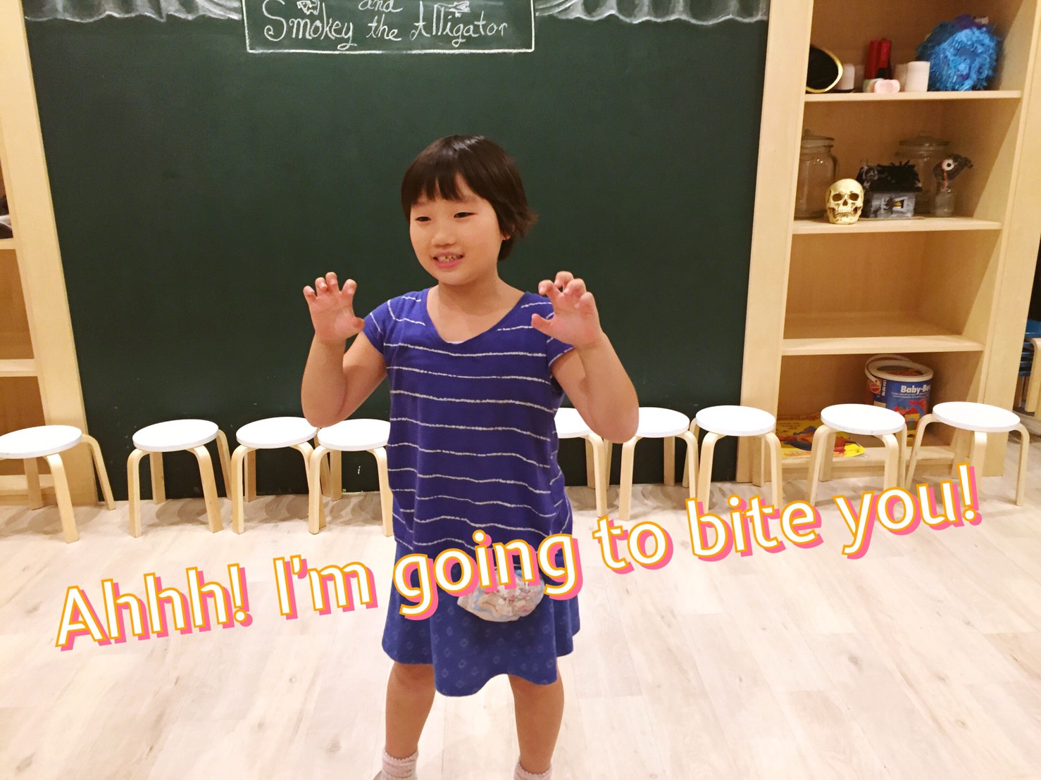 最後は、ストーリータイムで物語をみんなで発表しあっていき、覚えた単語、センテンスの練習です。