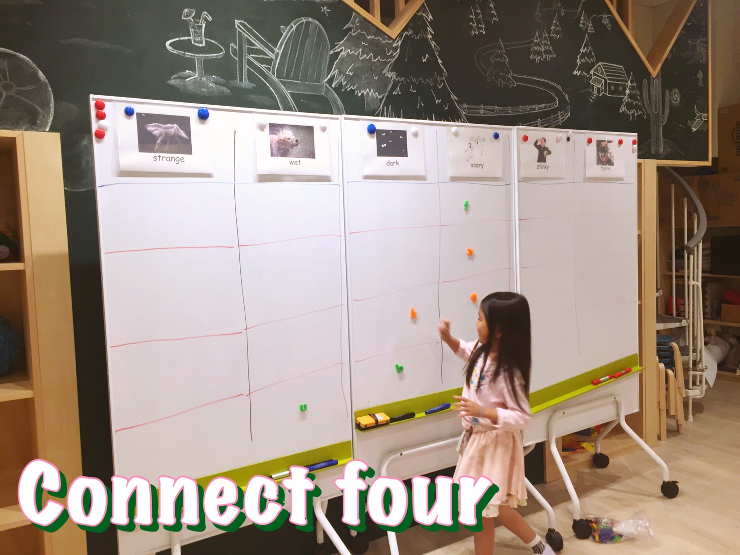 ターゲットワードで、夏休みにもやった「コネクト・フォー」先に4つ並べたら勝ちのゲームも行いました。