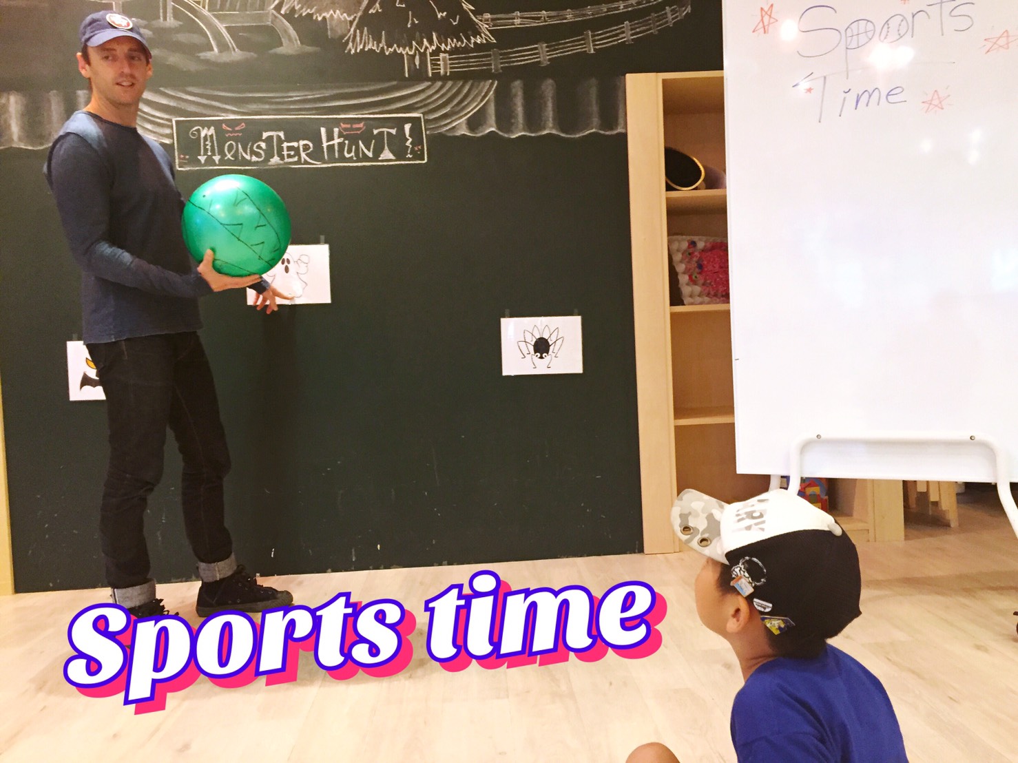 宿題を終わらせた生徒さん達もどんどん参加して”Target language”(覚えて欲しい言葉)の練習をして、その言葉を使ってボールゲームをやりました。