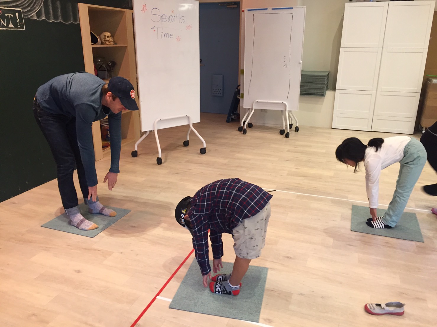 まずは先生と一緒にストレッチをしました。“Lunges”(ランジ)