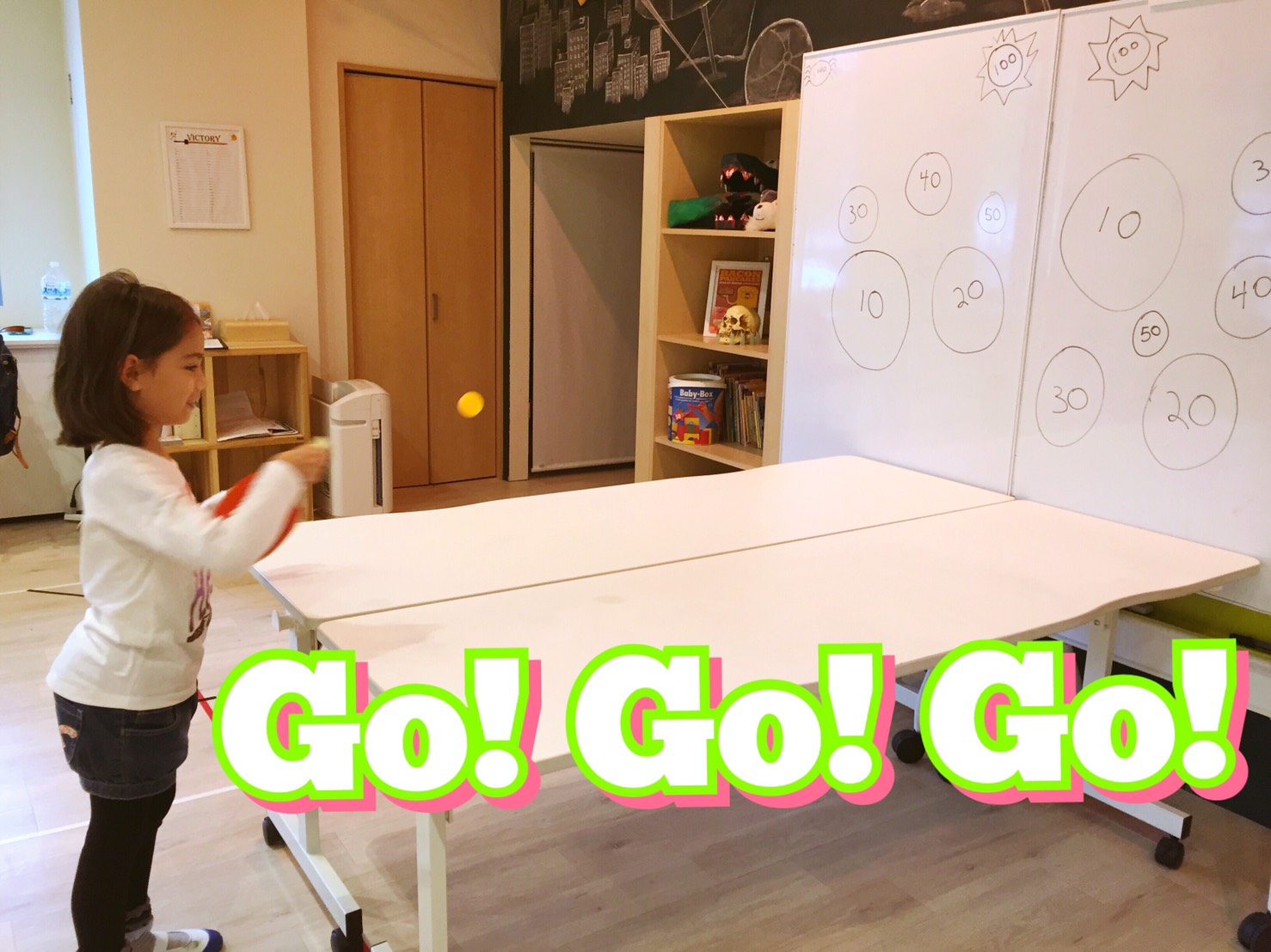 今日の”Workshop time”(ワークショップの時間)は“Sports(スポーツ)で”Ping Pong”(卓球)をやりました。