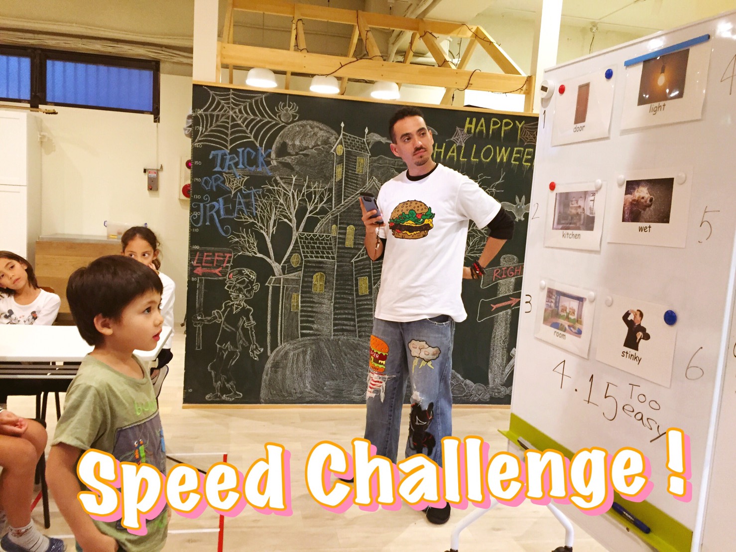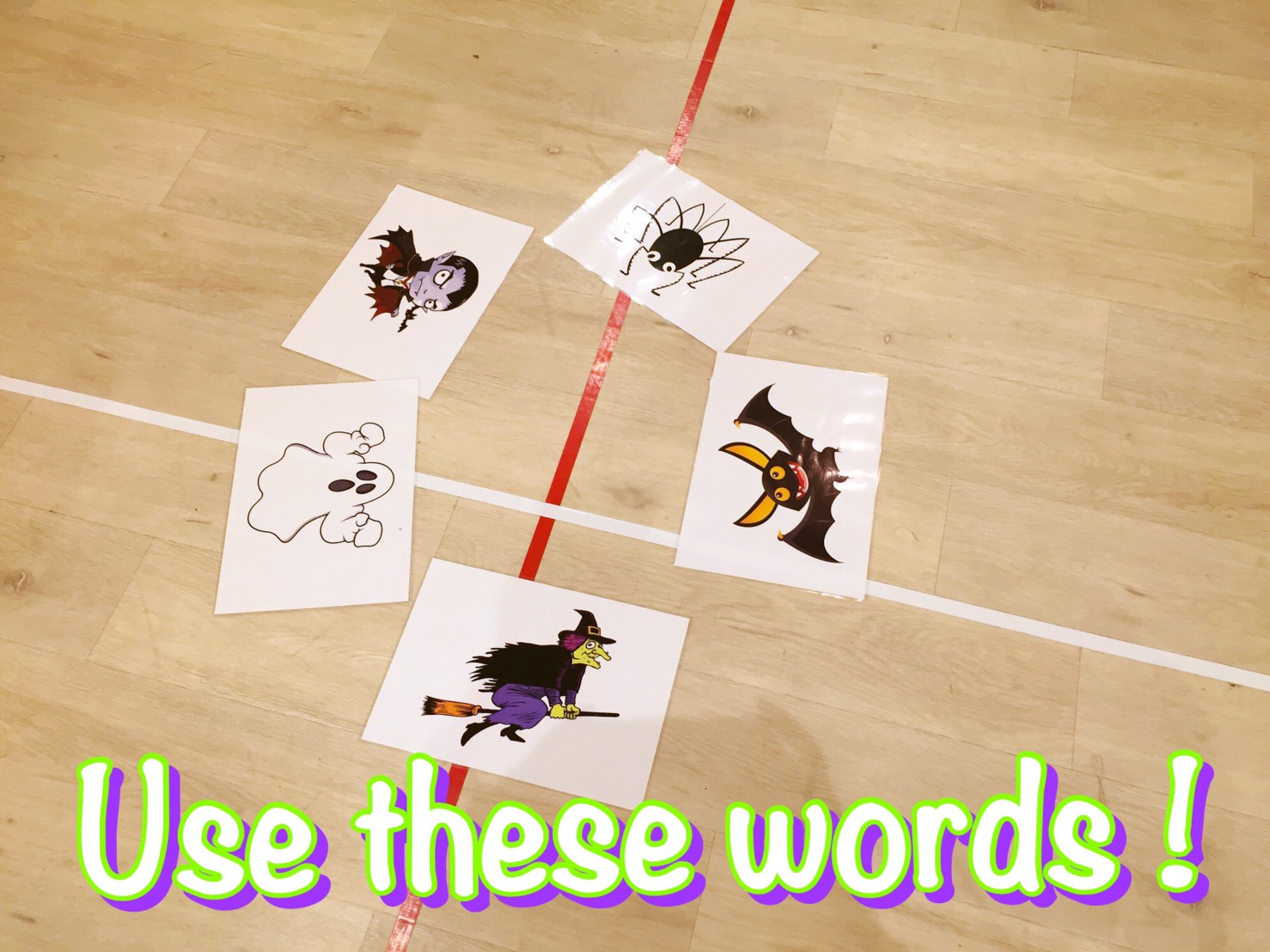 先ほどのスピードチャレンジで新記録を出した生徒さんがいたので、ご褒美でみんながやりたい!といったドッジボールで息抜きをした後、続いてはハロウィンに関連した単語を使ってのゲーム