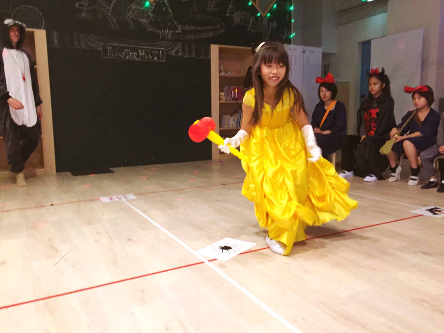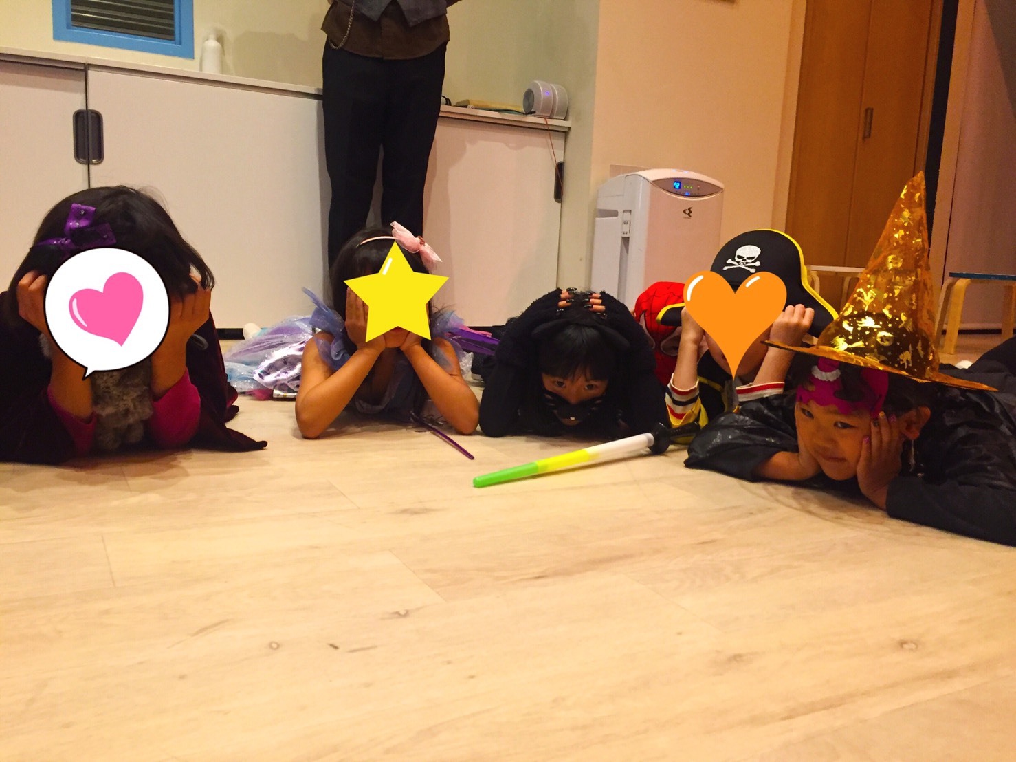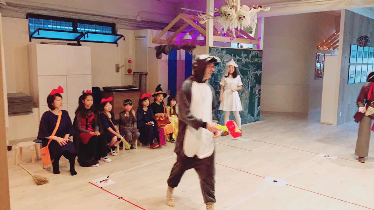 指事された言葉を聞き取って、その動作をとります。既存生がサポートしながら体験生と一緒になってハロウィンバージョンの指示がでていました!