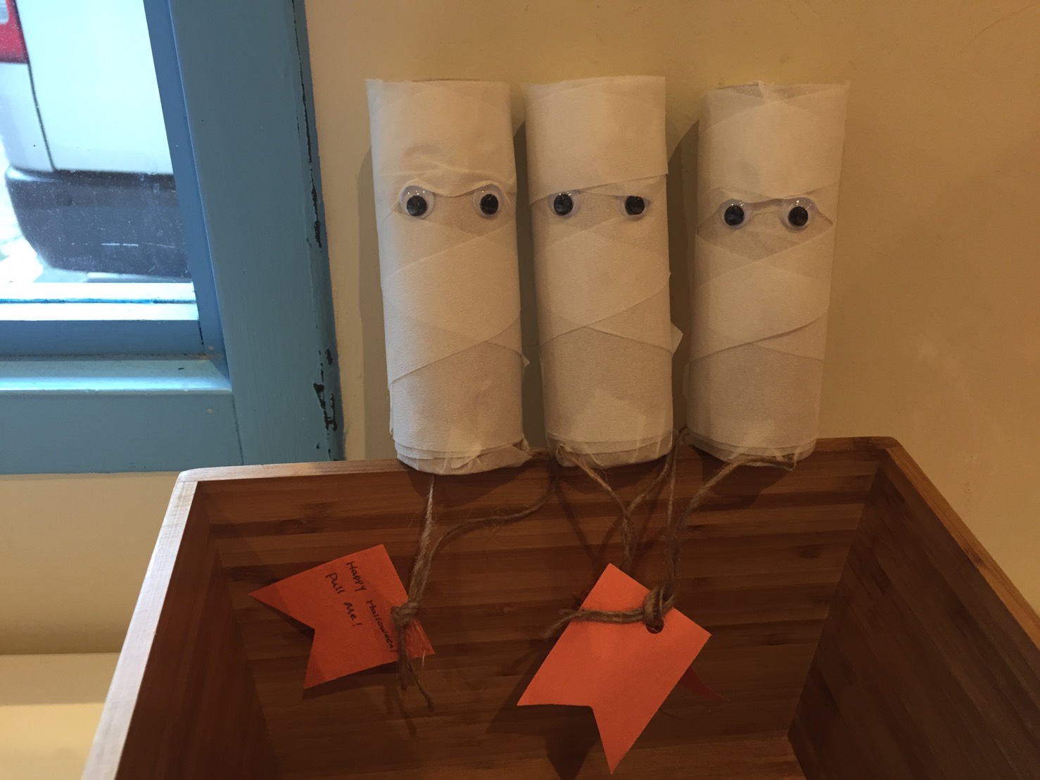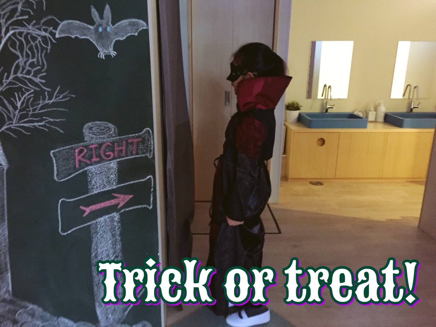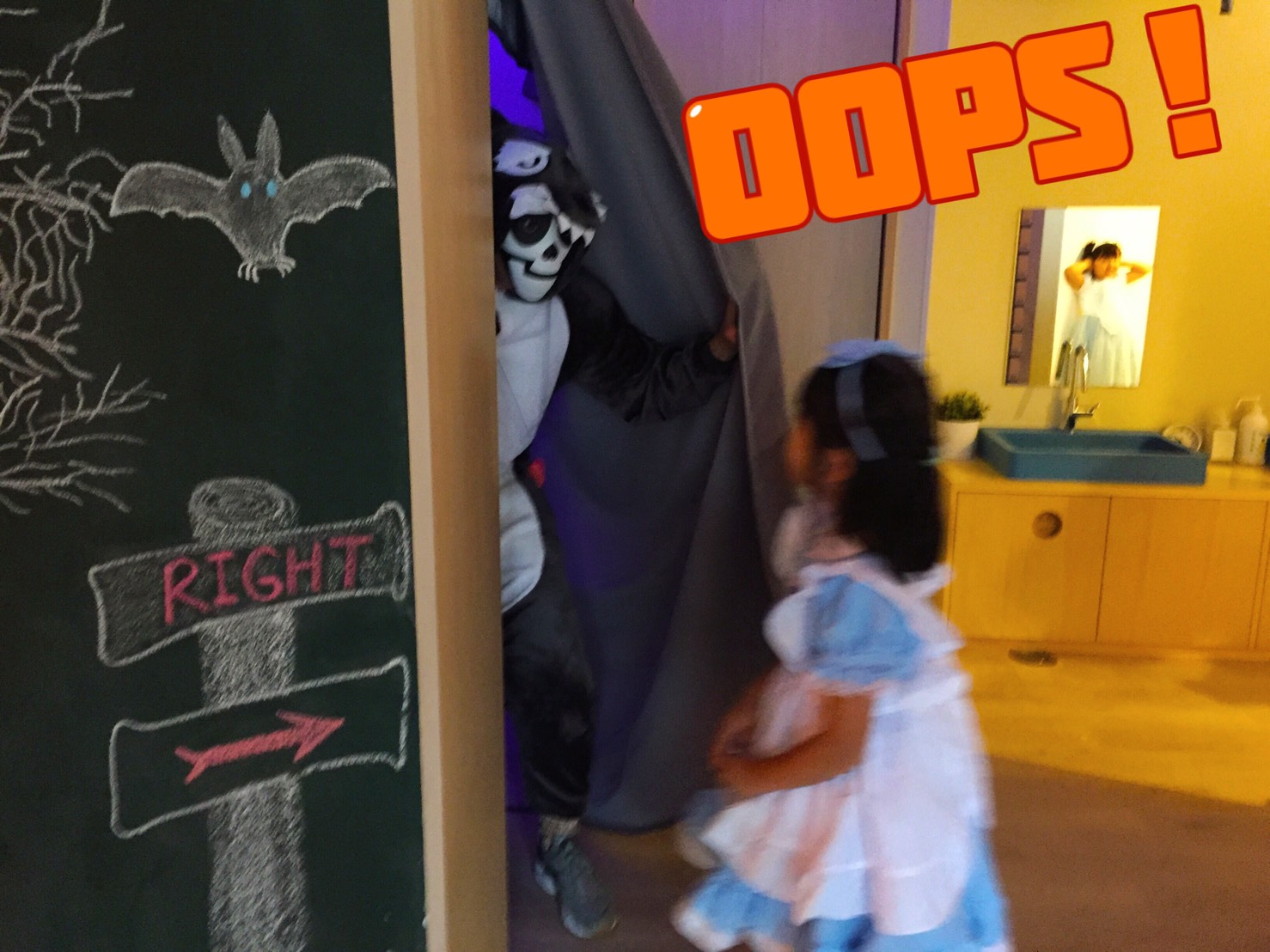 しばらく待つとカーテンが開いて”Trick or Treat”(驚かすのかお菓子がもらえるのか)が決定。