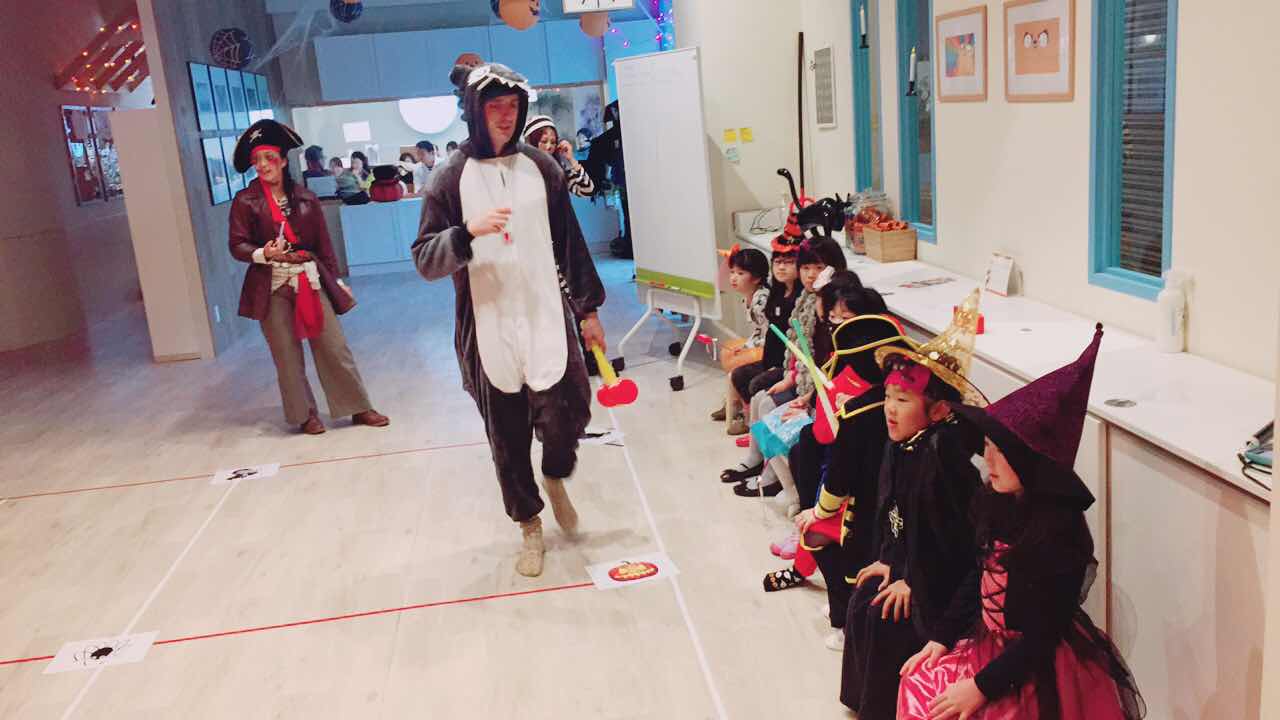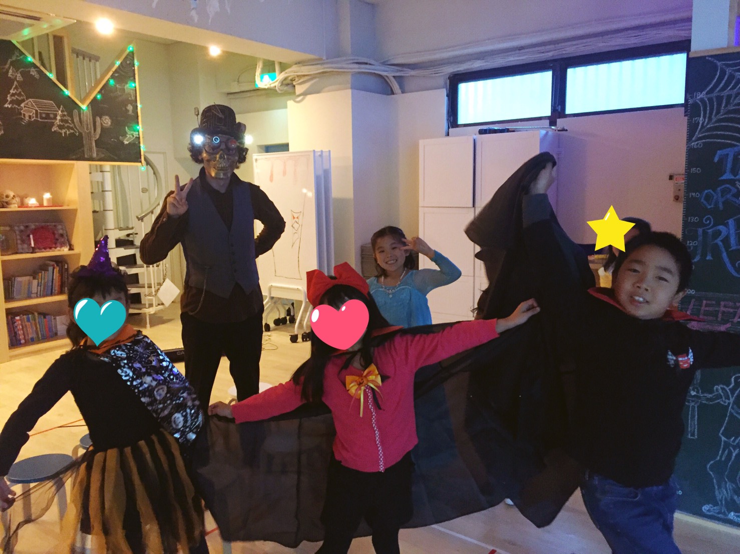 今日はあいにくの天候となってしまいましたが、たくさんの生徒さんやビジターさんが集まって”Halloween Party”(ハロウィンパーティー)を行いました。