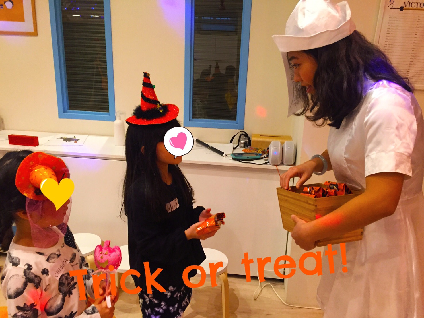 生徒さん:“Knock, knock. Trick or treat!”(トリック・オア・トリート!)