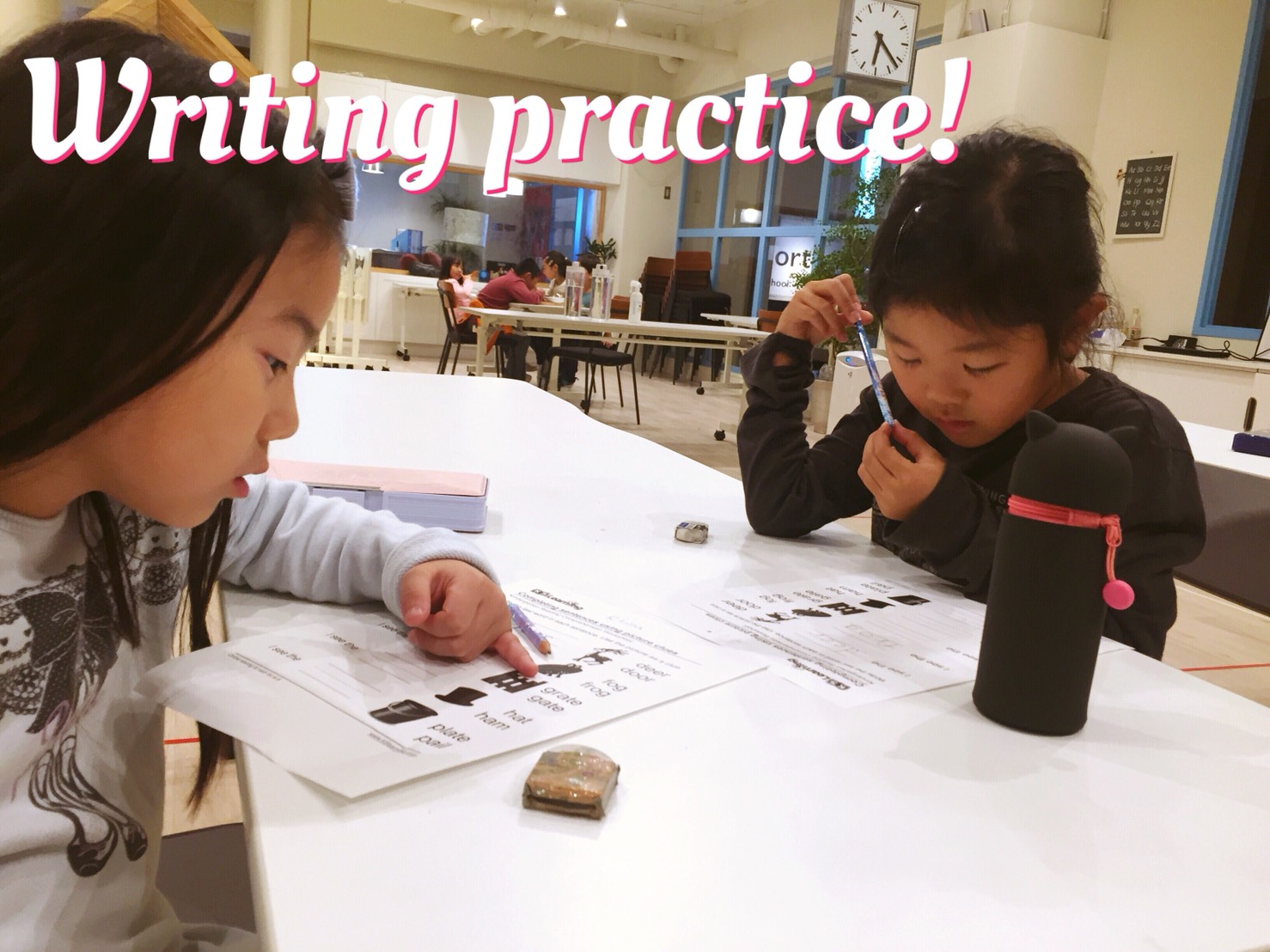 途中ライティングの練習もしました!慣れた言葉やアルファベットもそれぞれ「文字でかける練習」もして行きましょう。