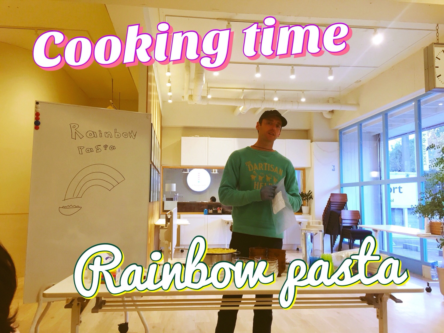 先生:“Who wants to eat pink pasta?”(ピンクのパスタを食べたい人?)