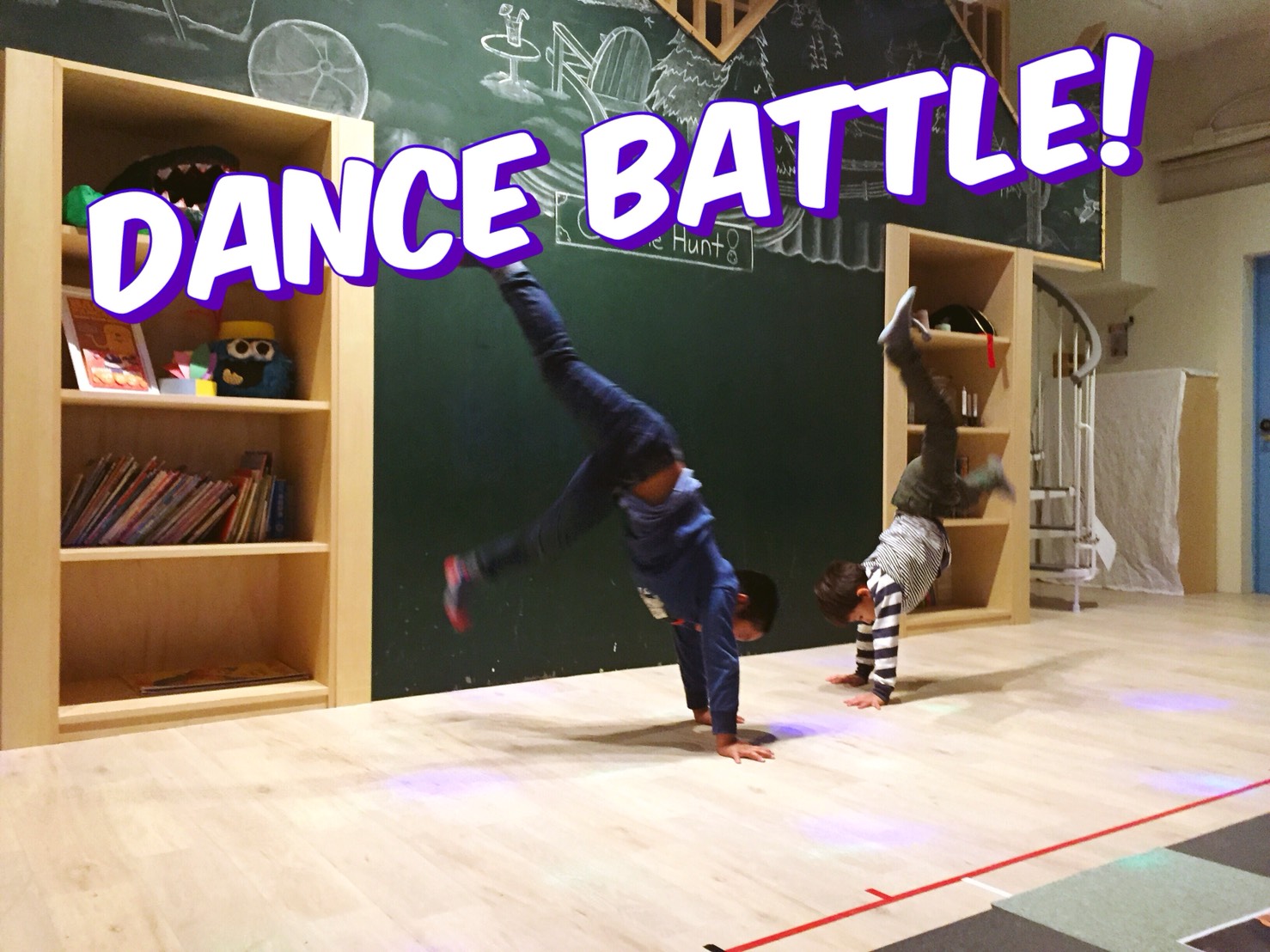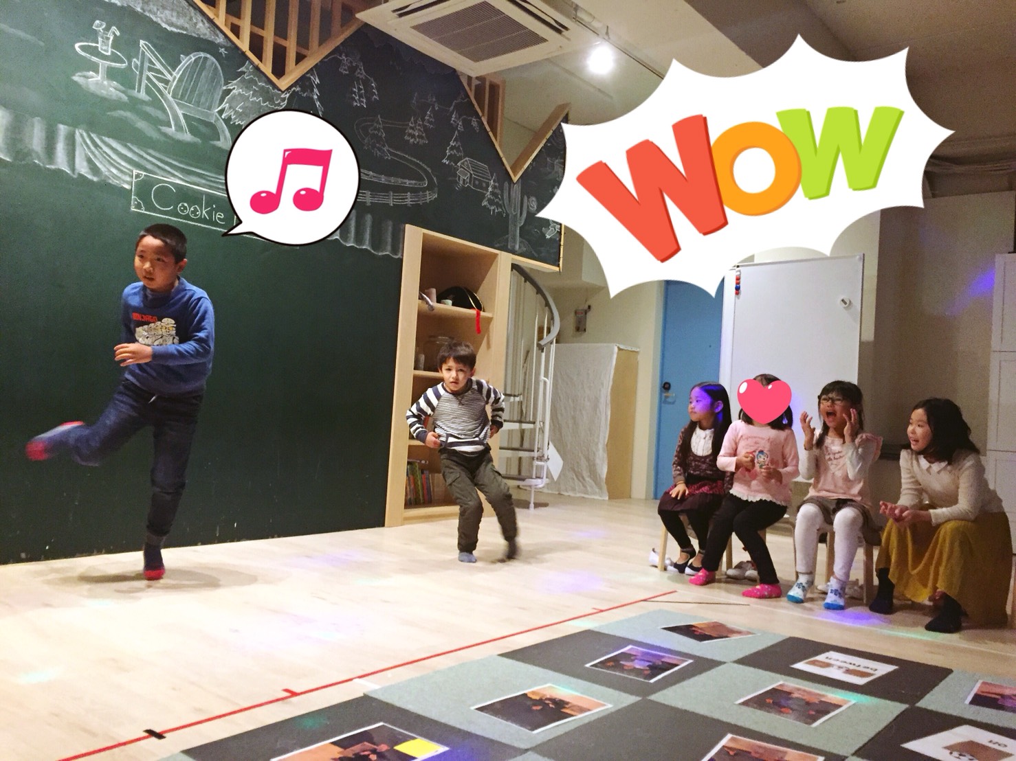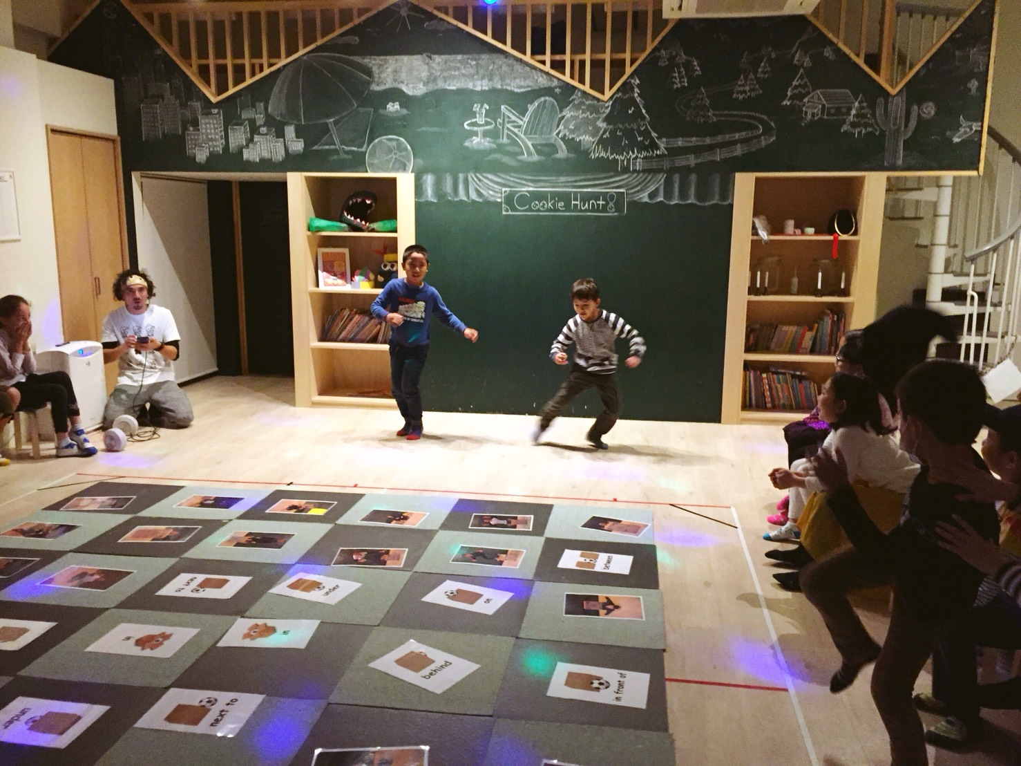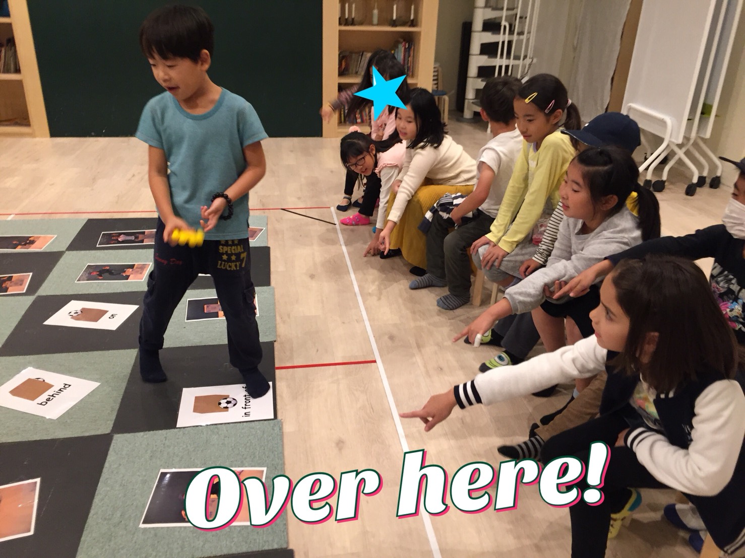 前置詞のカードゲームは、カードを選ぶ前に自由にダンスをして、より音楽にあったダンスをしたメンバーのチームが先行!最初はみんな恥ずかしながらやっていましたが、徐々にダンスも派手になっていきました!