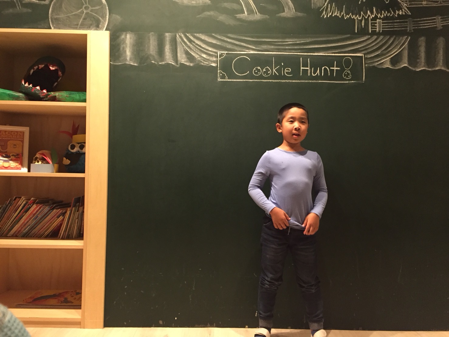 その流れでストーリータイムにも挑戦。徐々に暗記して発表できる文章量が増えてきましたね。