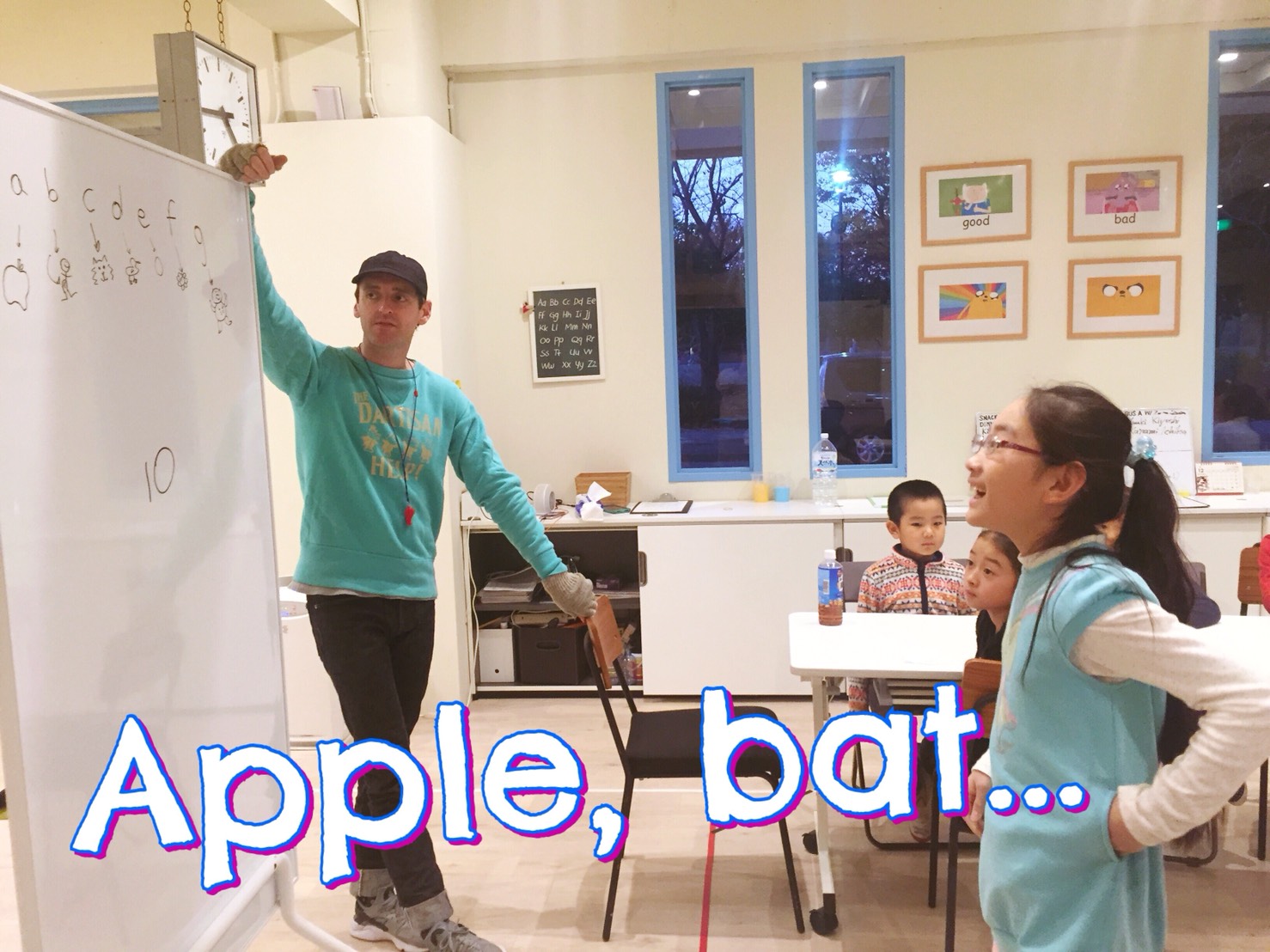 今日は学校が早く終わって来校した生徒さんと一緒にフォニックスの練習です。ある程度英語を話せるようになって来た生徒さんも、気をぬくとカタカナ英語になりがちです。