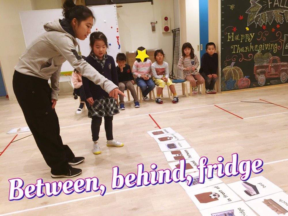 前置詞を使ったゲームやアクティビティを繰り返して来て、少しずつ覚えて来ましたね。