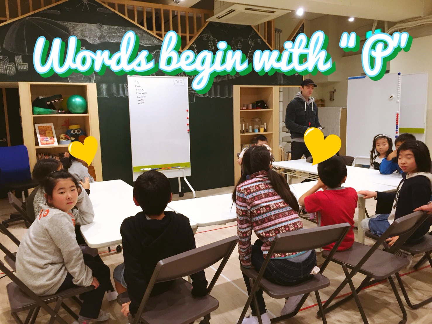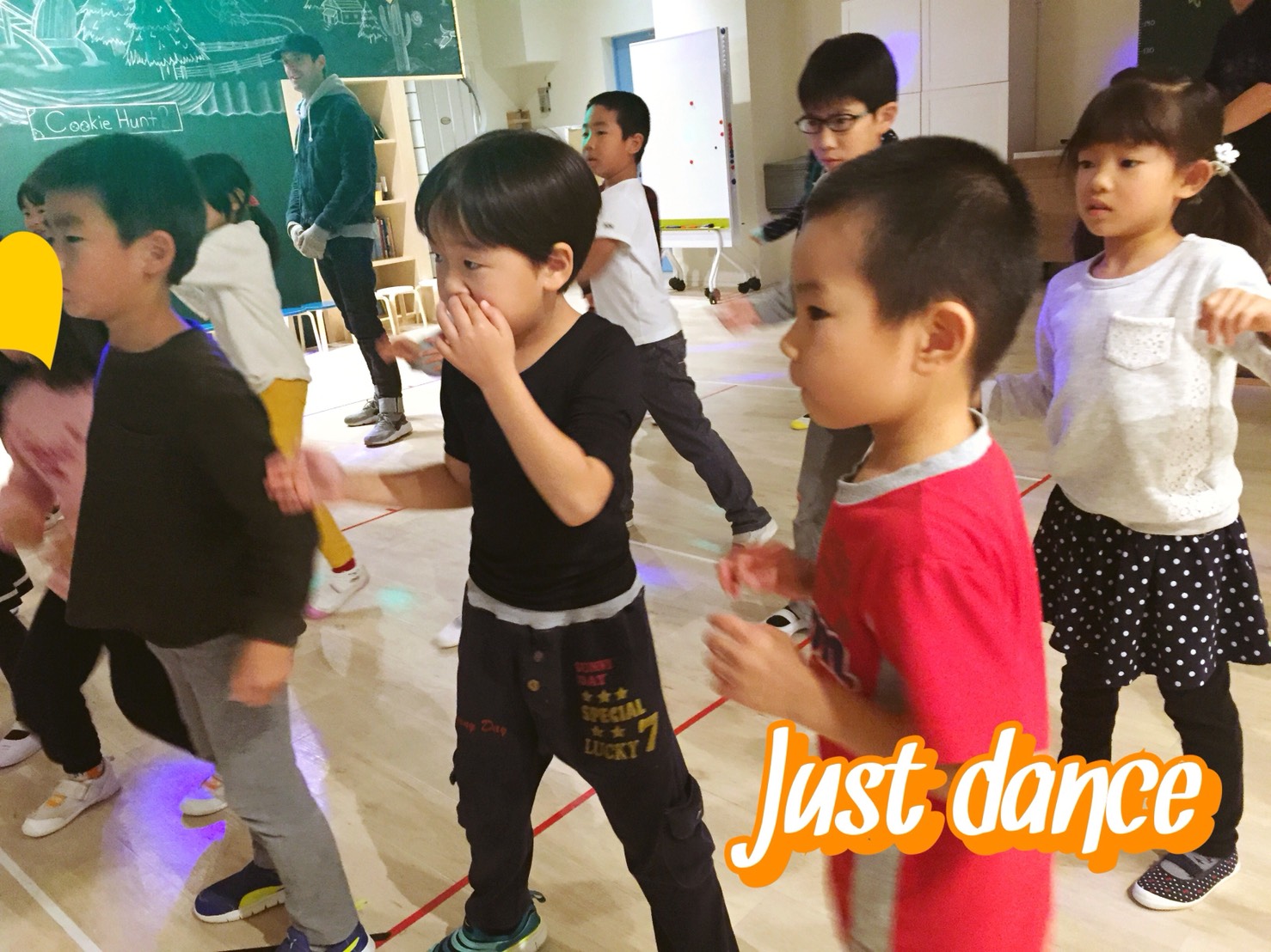 “Dance time”(ダンスの時間)や“What words start with ____?”(〇から始まる単語はなんだ?)や“Story time”(ストーリーの時間)を元気いっぱいにやりました。