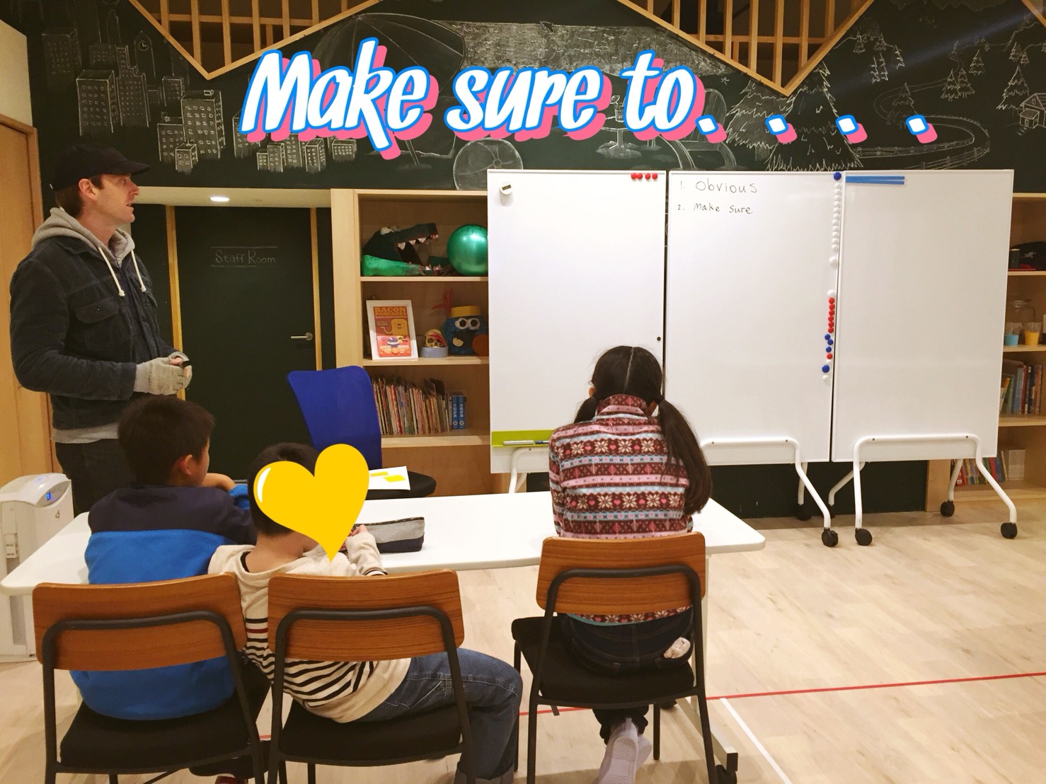 レギュラーコースのみんなが帰った後、7時から8時までは”Make sure”(忘れずに~する)を使ってセンテンスを作る練習、文法と読み書きをやりました。