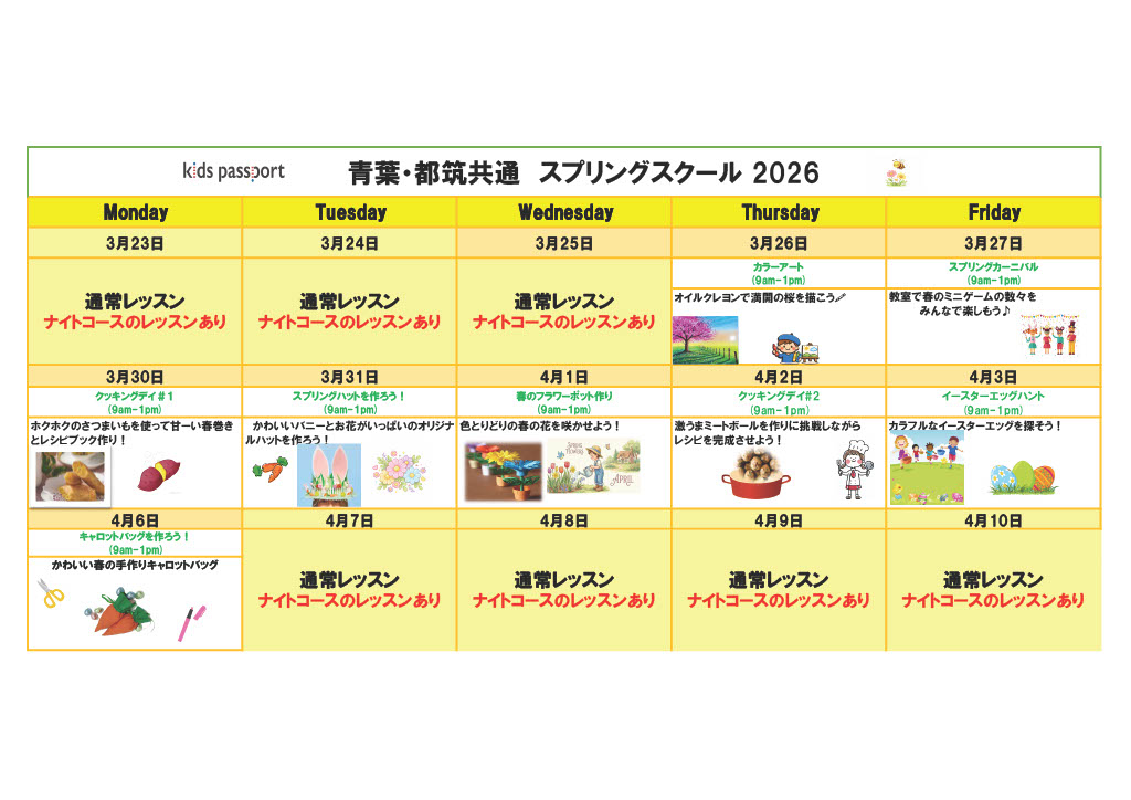 - 長期休暇期間中はナイトコースのレッスンはおこなっていません。